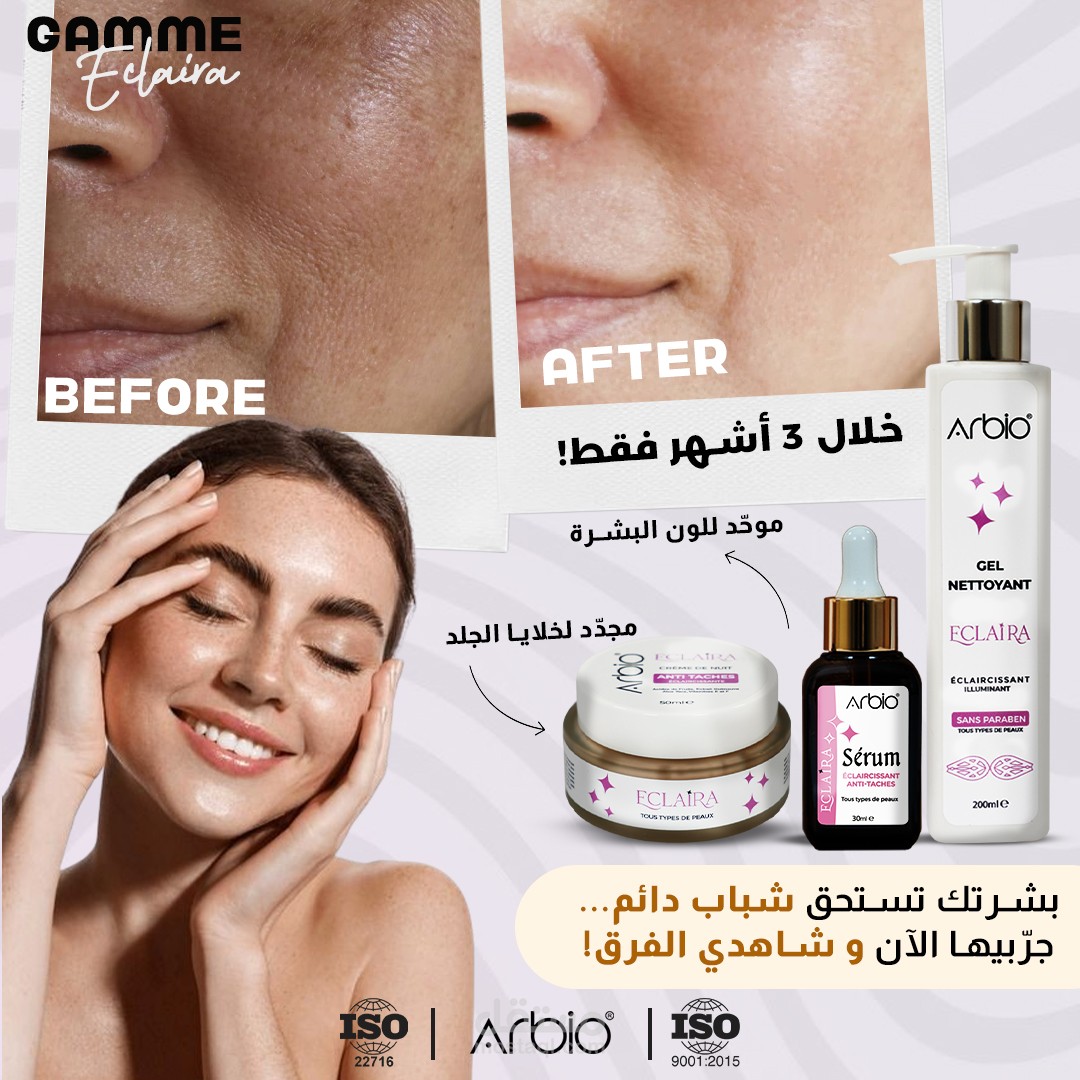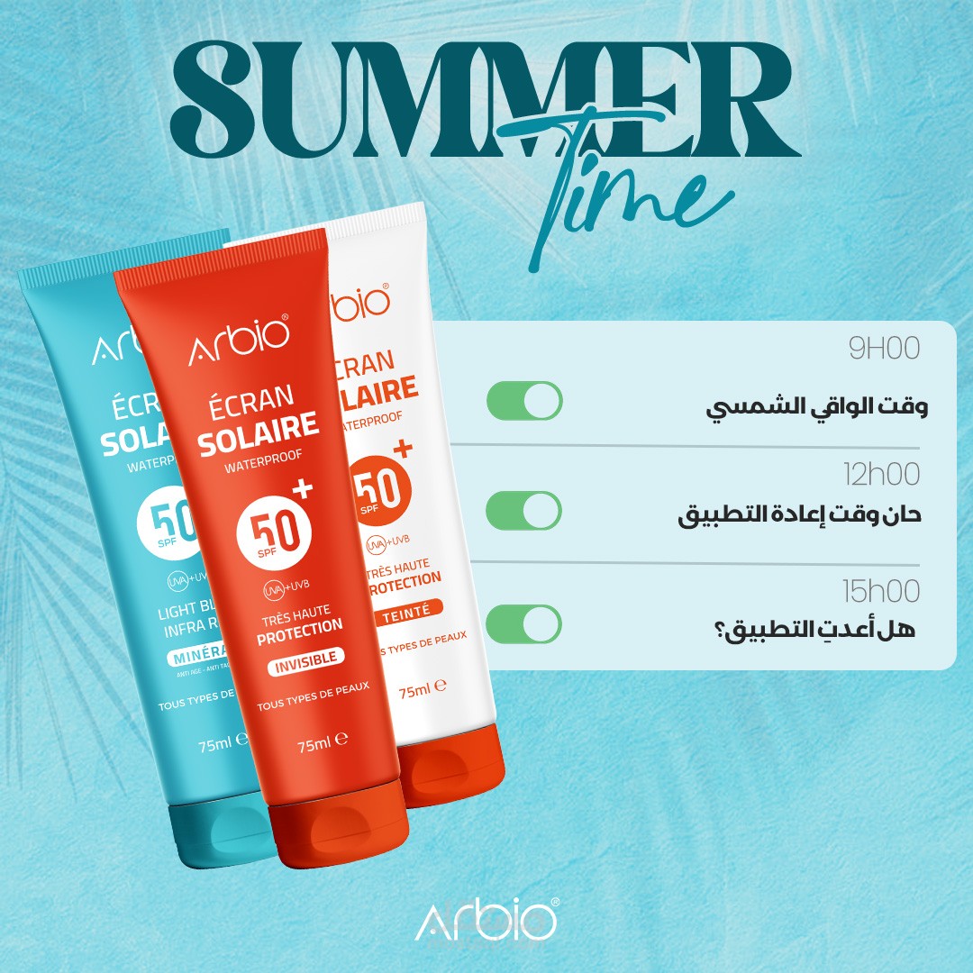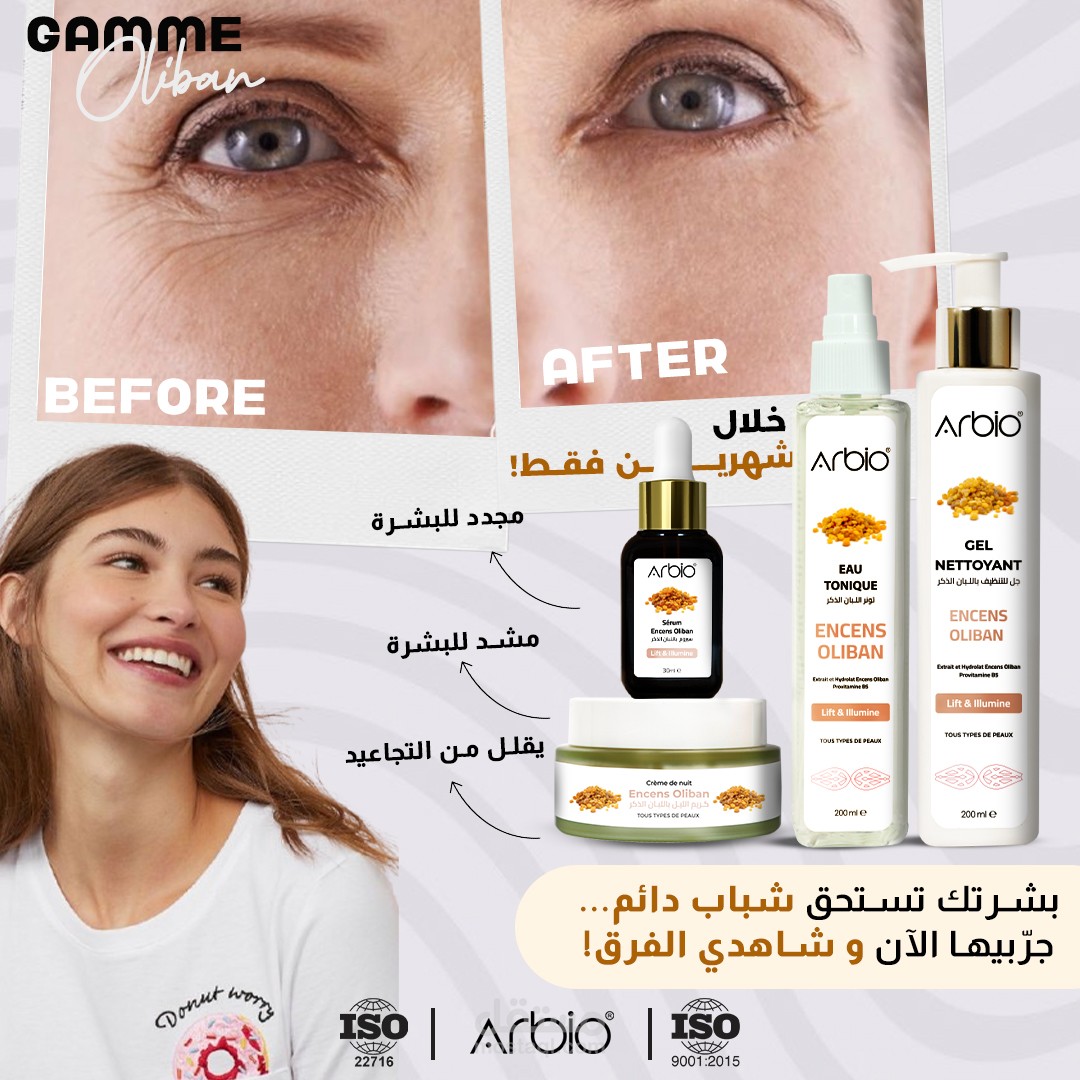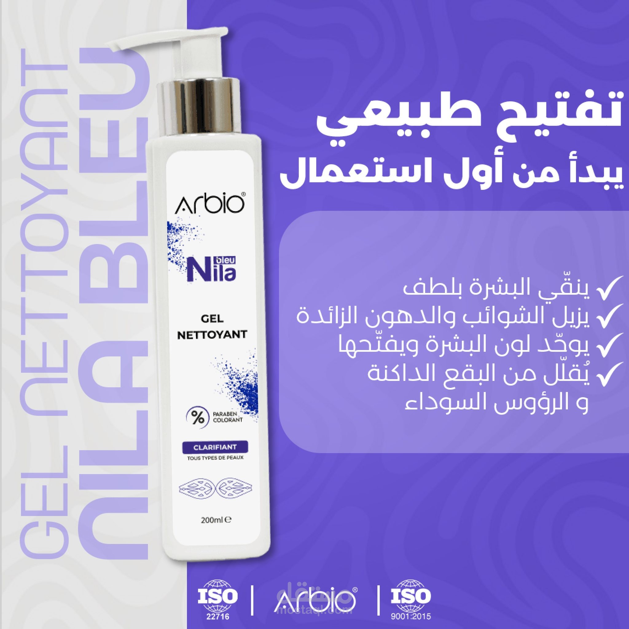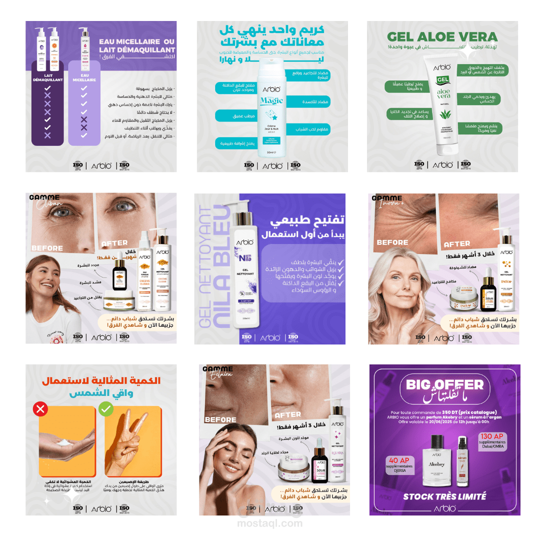 Social media posts showcasing the products of Arbio Naturel, a cosmetic brand based in Tunisia.