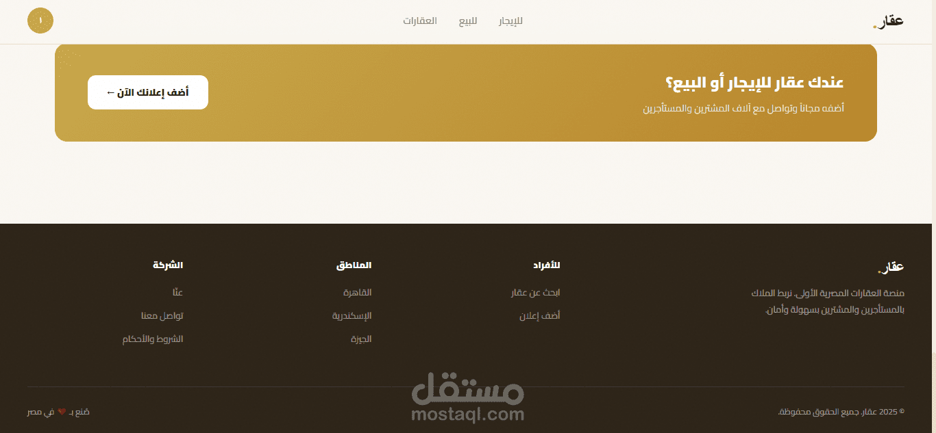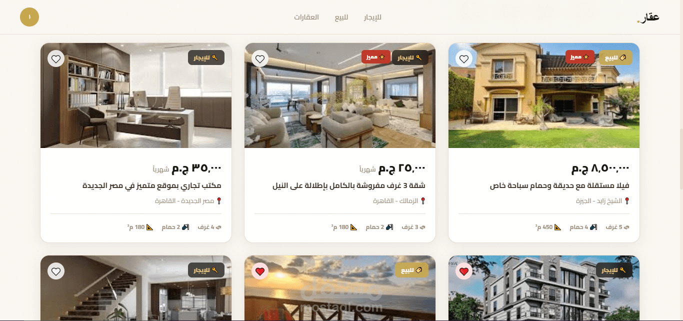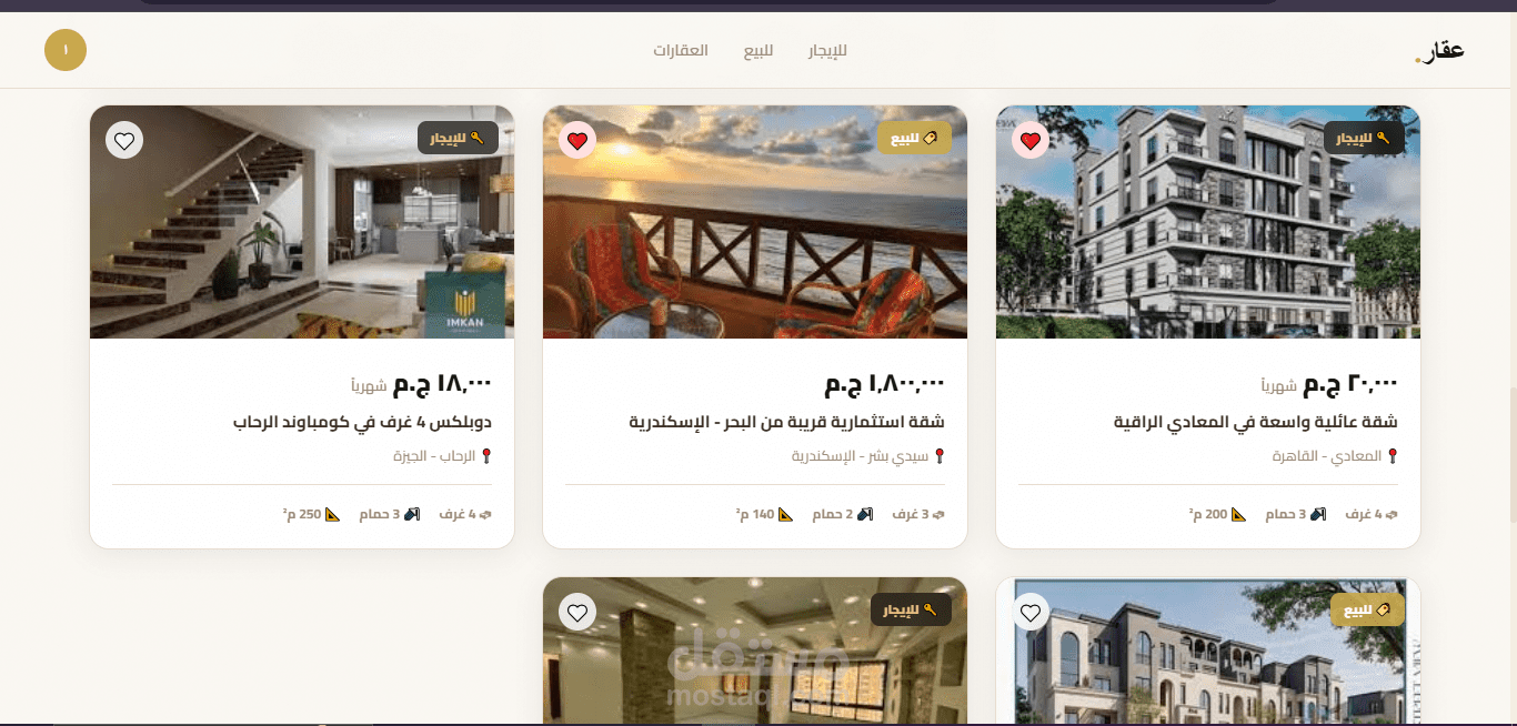 قمت بتطوير منصة عقارية متكاملة للسوق المصري تشمل باك إند احترافي مبني على Django REST Framework وفرونت إند تفاعلي بتصميم عصري. المنصة تتيح إضافة العقارات وتصفيتها والبحث فيها مع نظام مستخدمين كامل.