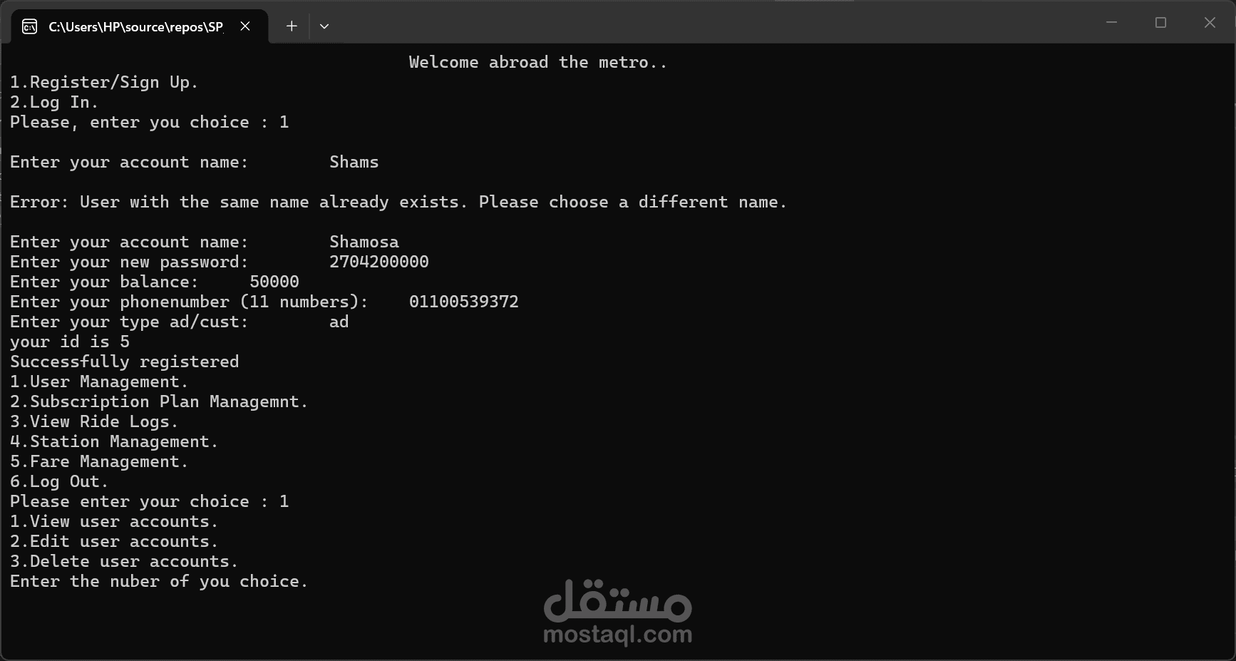 •Part of a team project simulating a metro system; focused on User Management features (view, edit, delete user accounts)