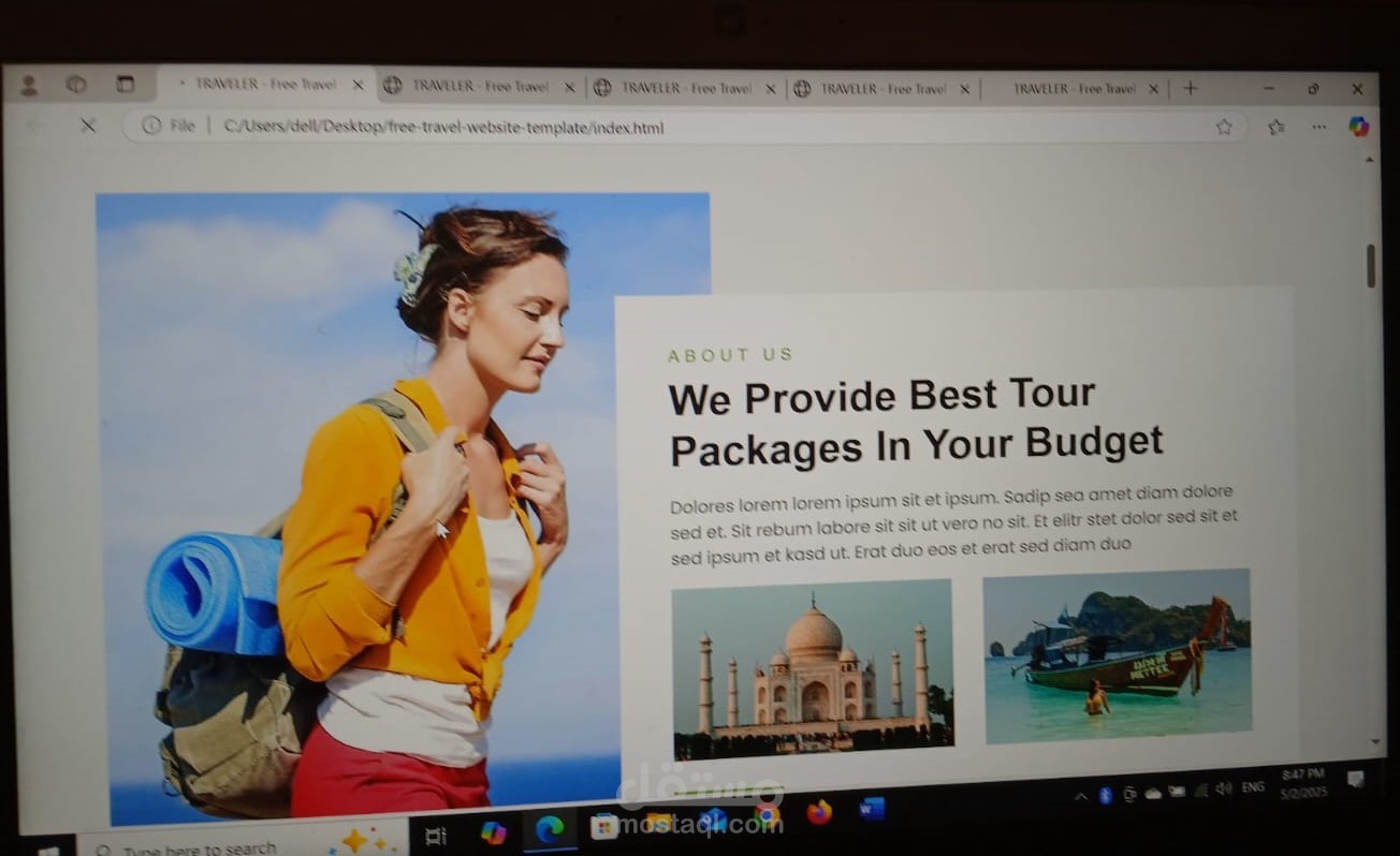 تم تطوير موقع إلكتروني لشركة سياحة يهدف إلى عرض الخدمات السياحية بطريقة احترافية وسهلة الاستخدام، مع توفير معلومات شاملة عن الرحلات والوجهات السياحية والعروض المتاحة. يتيح الموقع للزوار استكشاف البرامج السياحية المختلفة، الاطلاع على تفاصيل الرحلات، والتواصل مع الشركة للحجز أو الاستفسار.