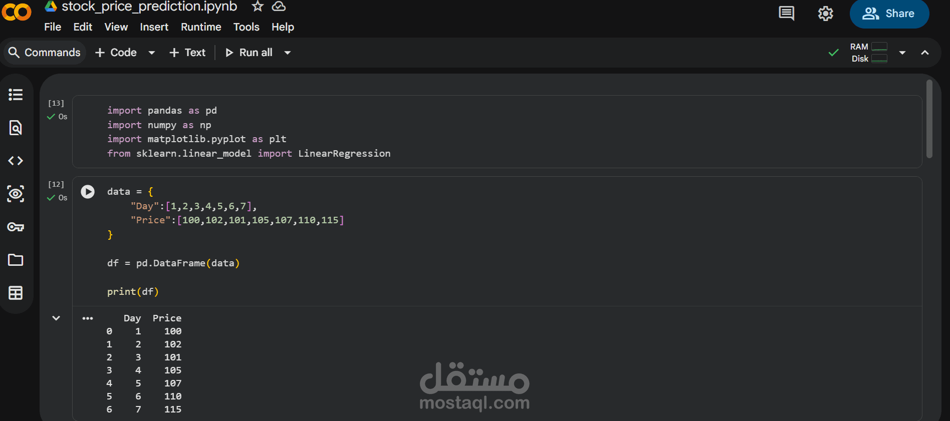 Built a simple machine learning model to predict stock prices using Linear Regression in Python.