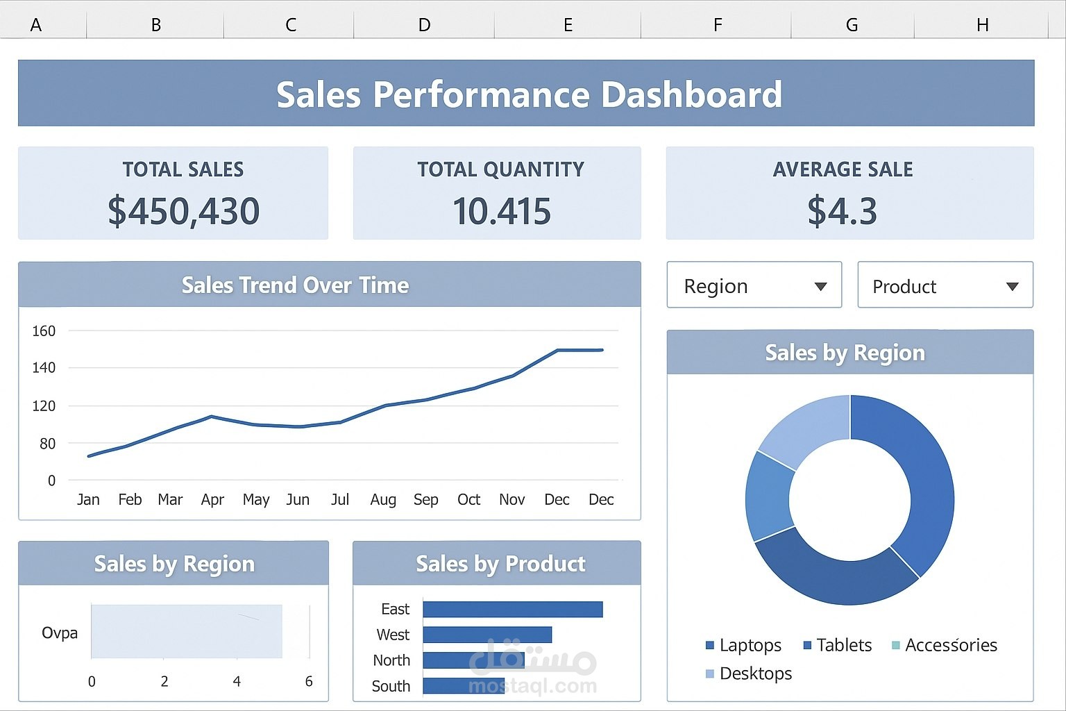 * رسم بياني (Donut) يوضح نسبة مبيعات كل منطقة.