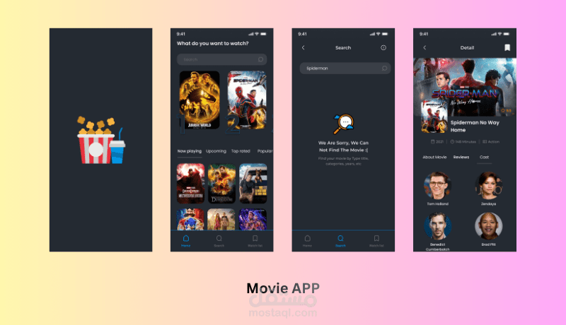 يعتمد التطبيق على استخدام API لعرض بيانات الأفلام مثل اسم الفيلم والتقييم والوصف وتاريخ الإصدار.