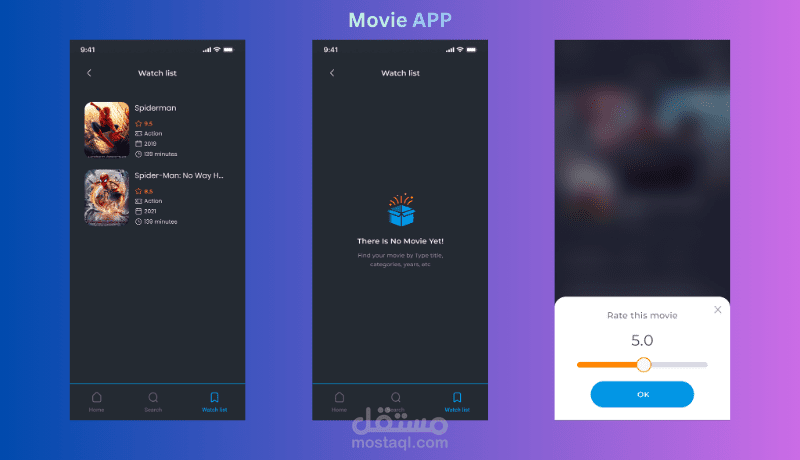 تم تنفيذ هذه الواجهات ضمن مشاريع تطبيقات موبايل مثل تطبيق استعراض الأفلام.
