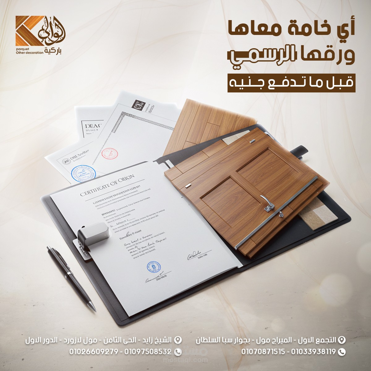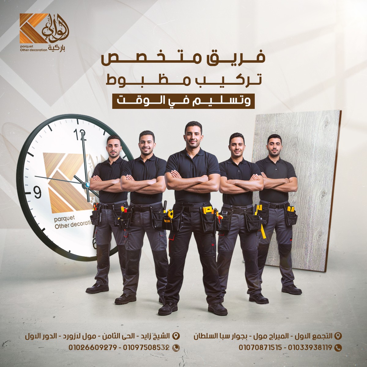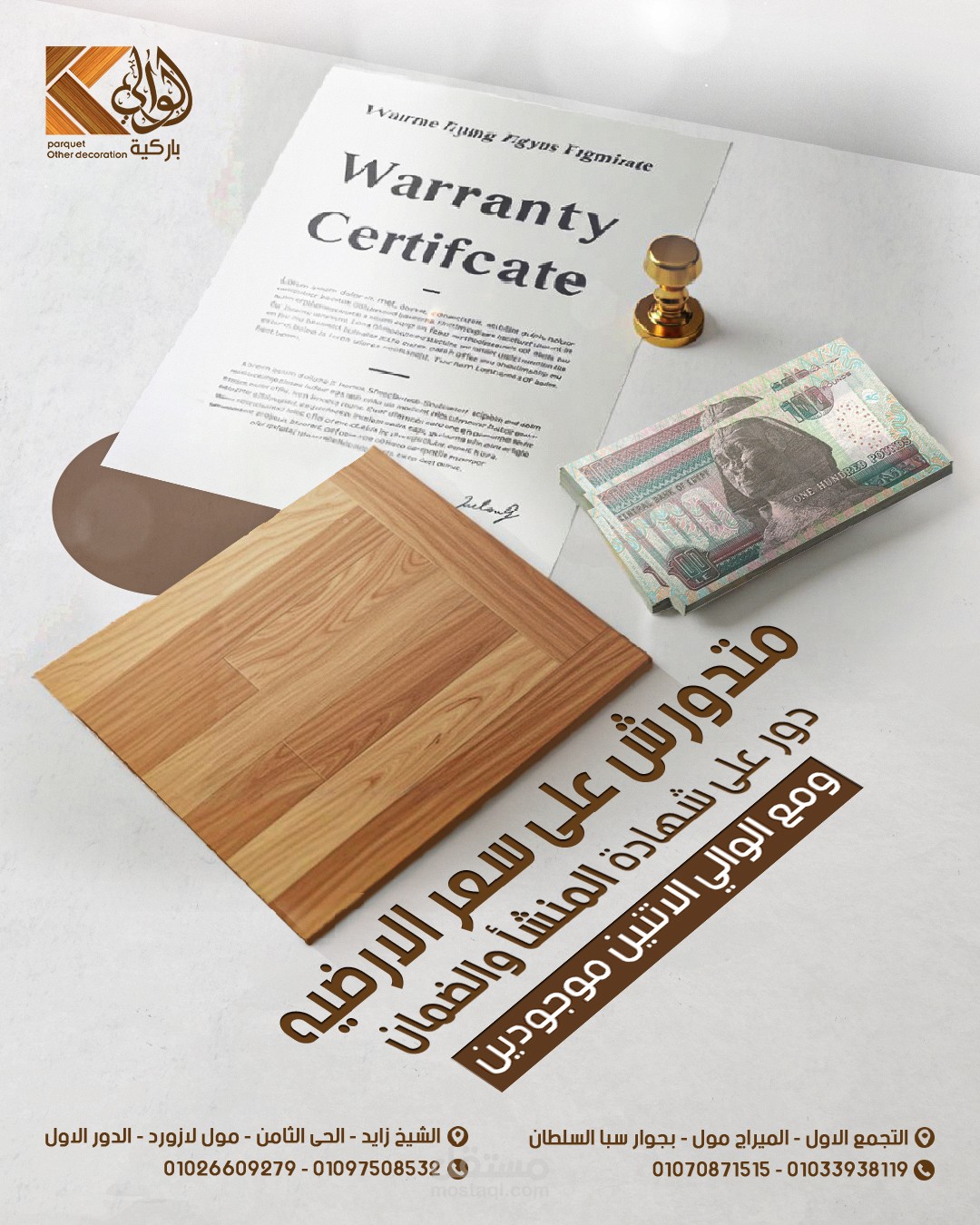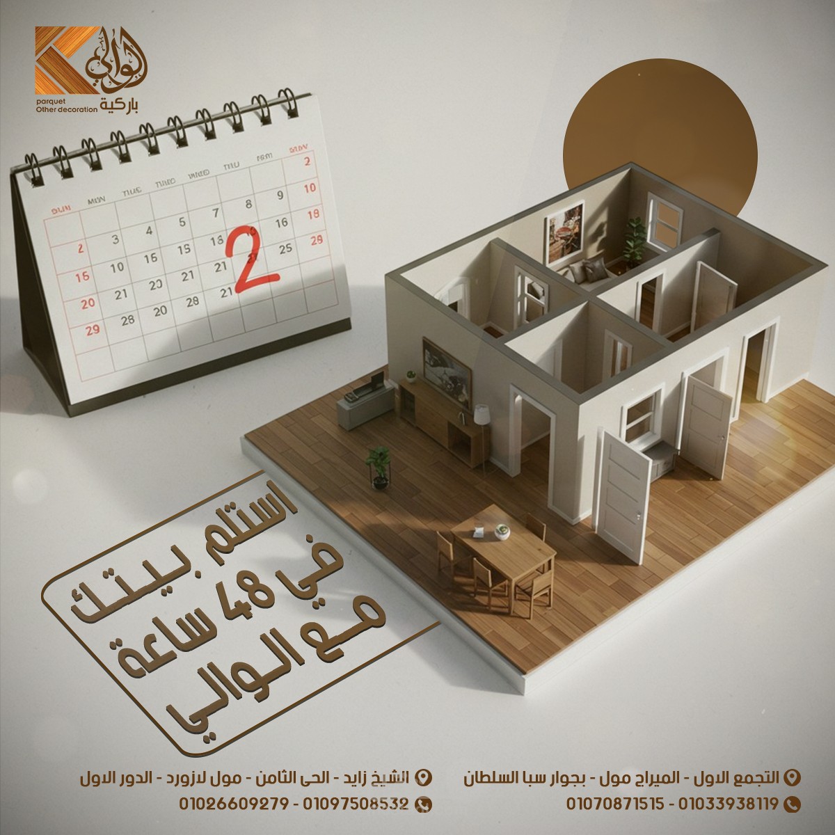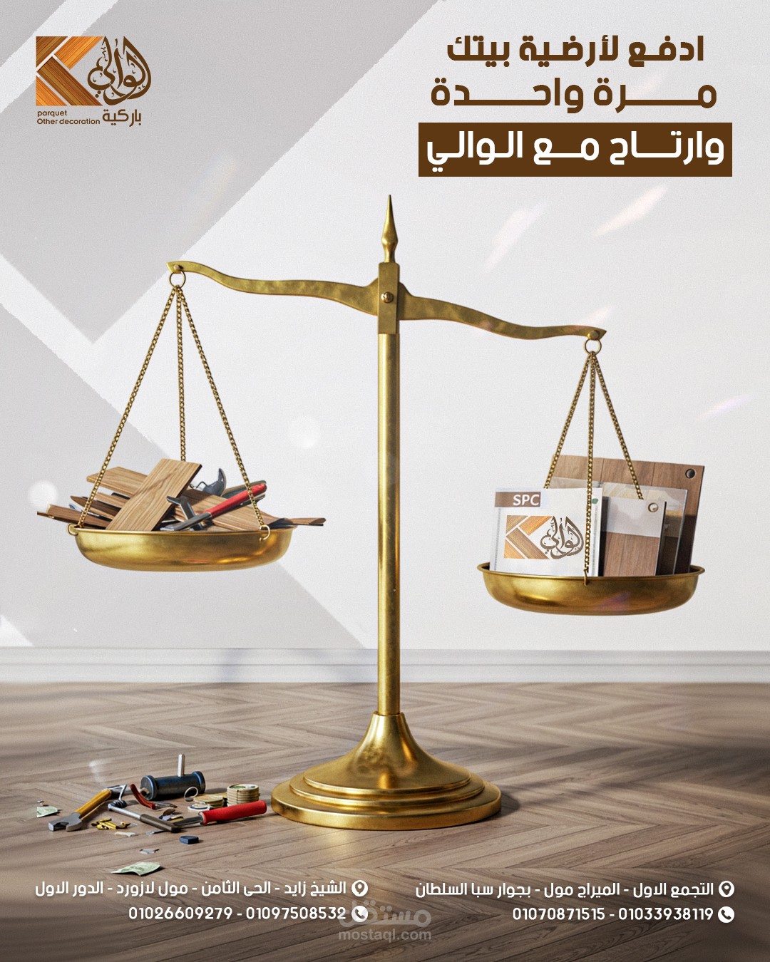 Social media design project for Al Waly Parquet, focused on showcasing the elegance of wooden flooring and the precision of craftsmanship. The visual direction highlights warmth, premium quality, and brand confidence to strengthen the brand’s digital presence in a refined and impactful way.
