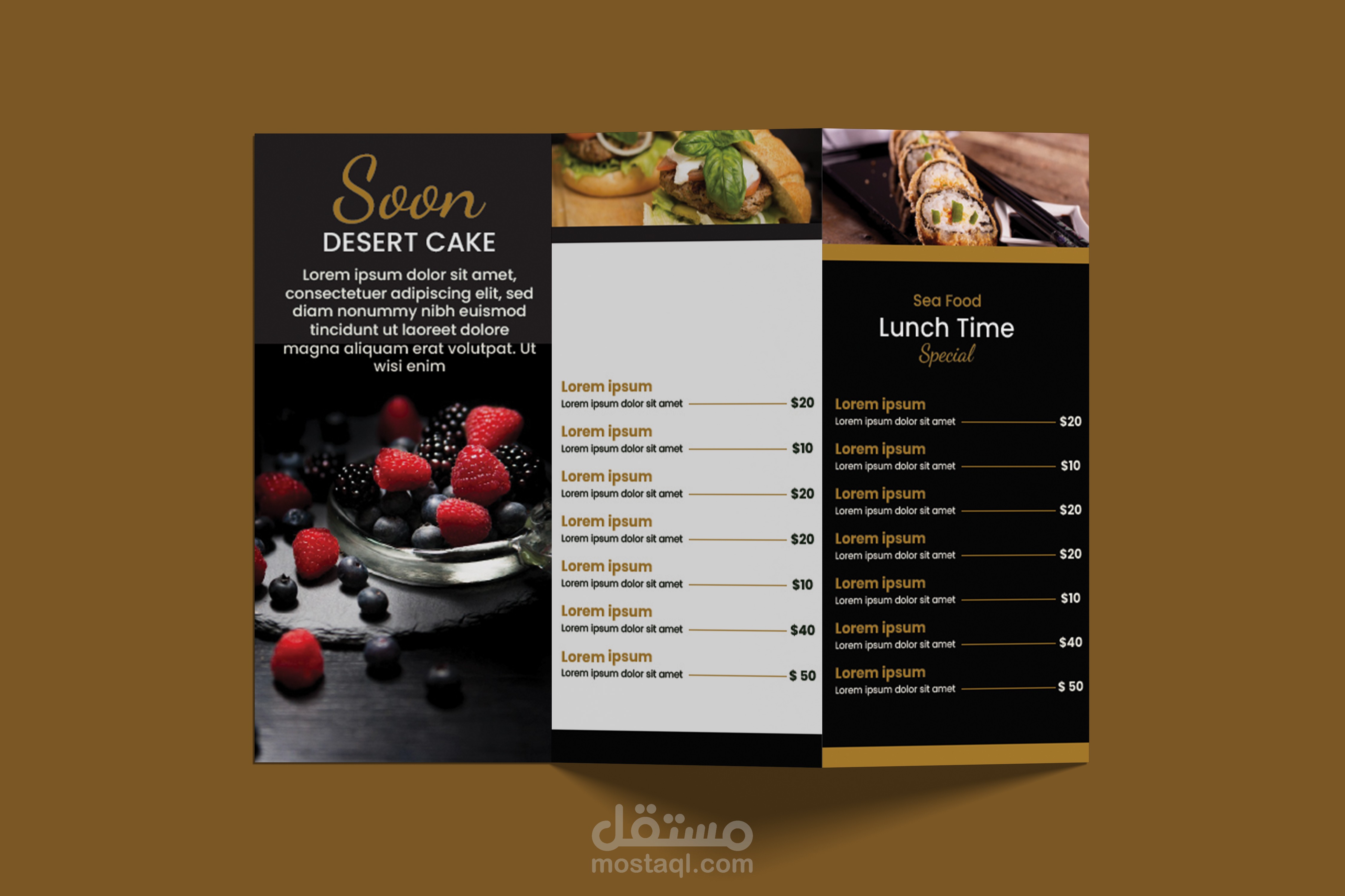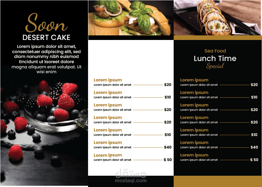 I designed a modern and attractive restaurant menu that clearly presents food items in an organized and appealing way. The design focuses on readability, balanced layout, and attractive colors that reflect the restaurant’s brand. I used Adobe Photoshop and Adobe Illustrator to create a professional menu suitable for print and digital use.