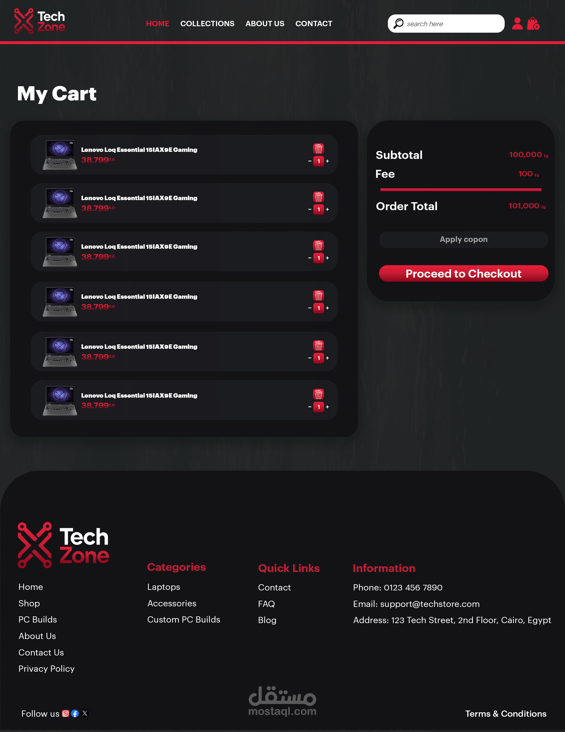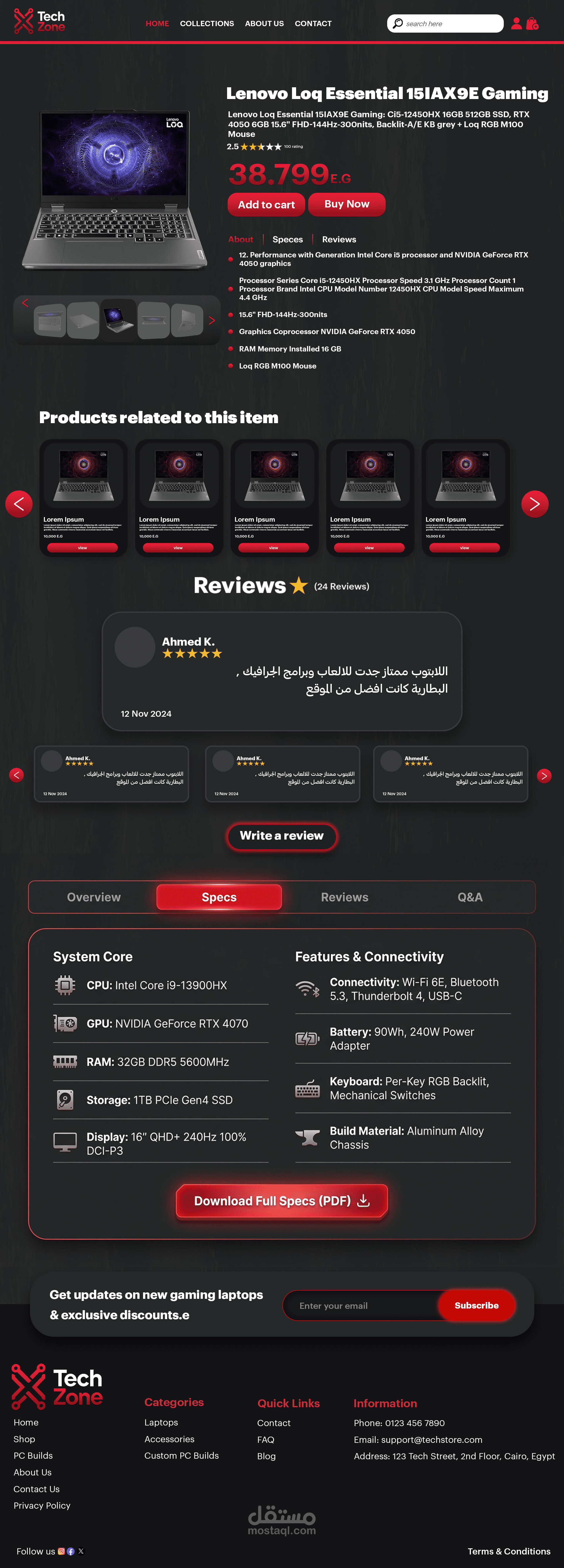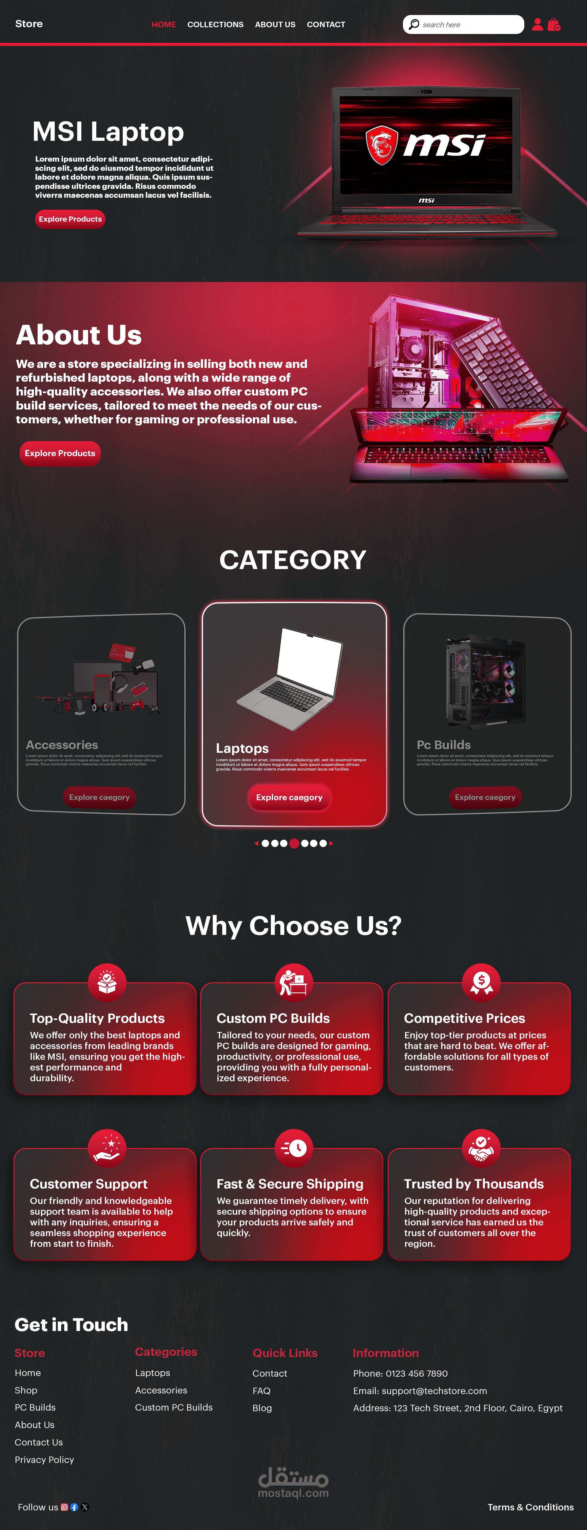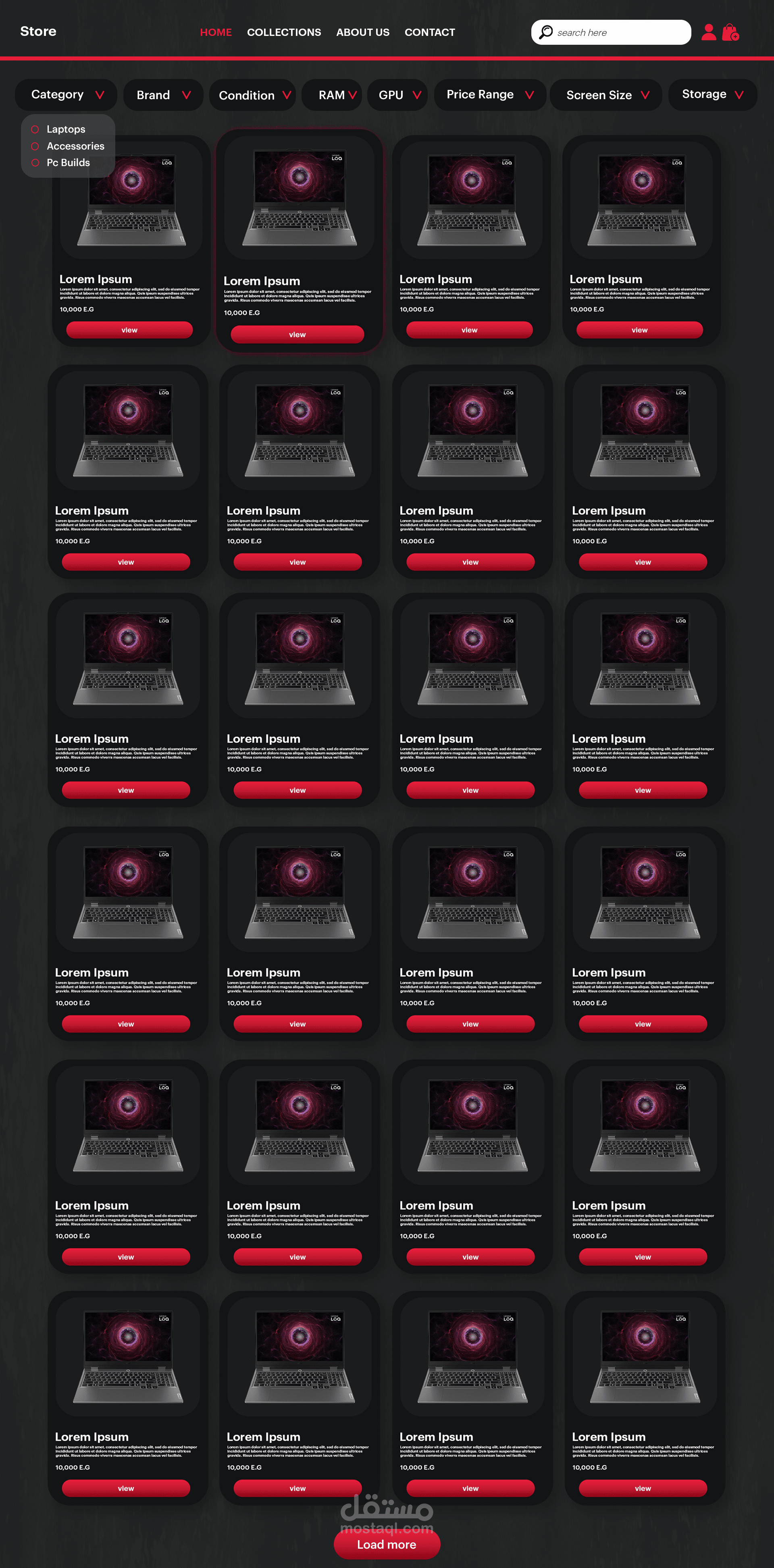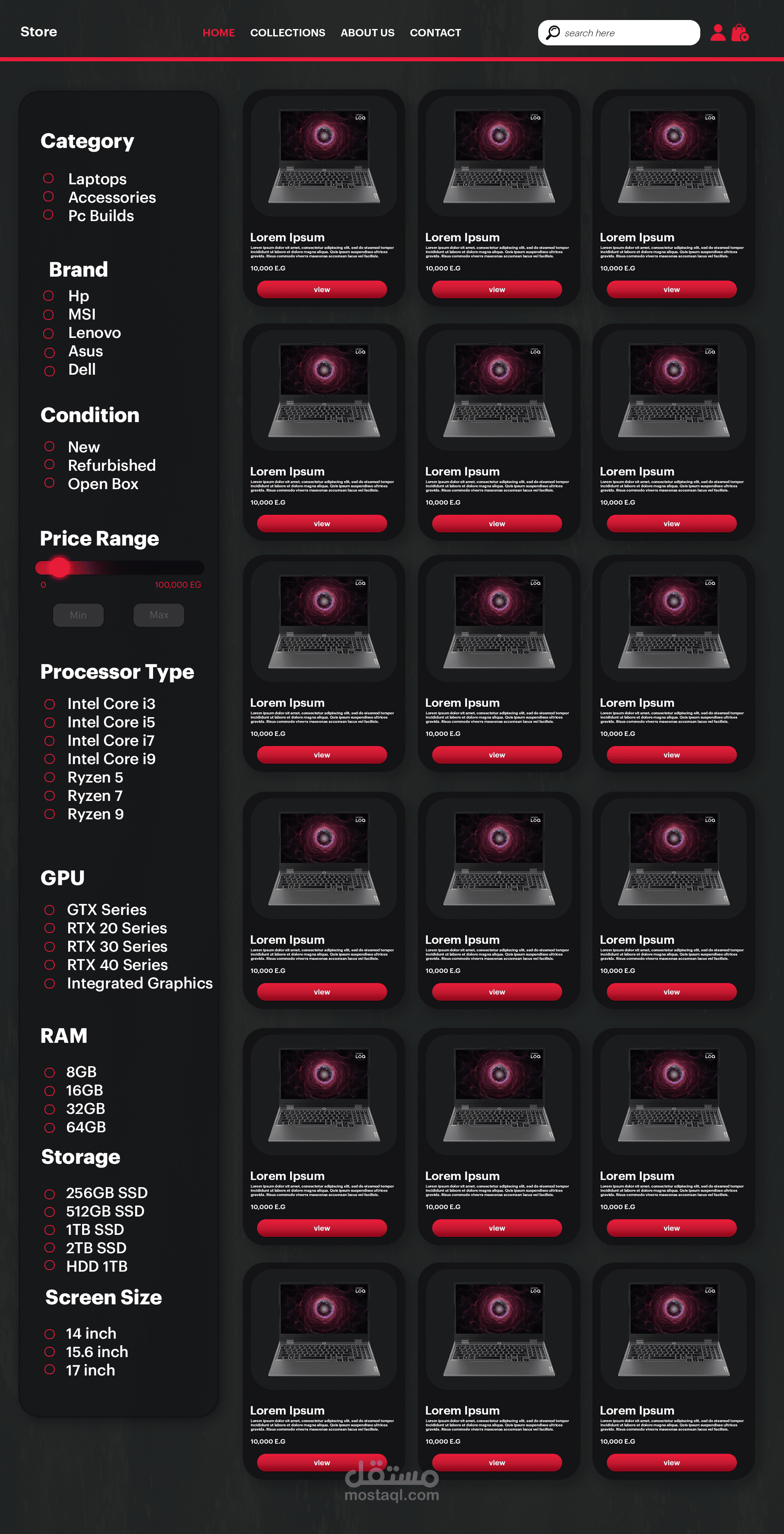 تصميم واجهة تسجيل دخول لمتجر إلكتروني بأسلوب حديث وبسيط يركز على سهولة الاستخدام وتجربة المستخدم. تم تنسيق الألوان بشكل متناسق بين الأحمر والرمادي لإعطاء مظهر احترافي وجذاب، مع توزيع واضح للعناصر مثل حقول البريد الإلكتروني وكلمة المرور وزر تسجيل الدخول. كما يتضمن التصميم إمكانية تسجيل الدخول عبر حسابات جوجل أو فيسبوك، بالإضافة إلى شريط تنقل في الأعلى لسهولة الوصول إلى أقسام الموقع المختلفة.