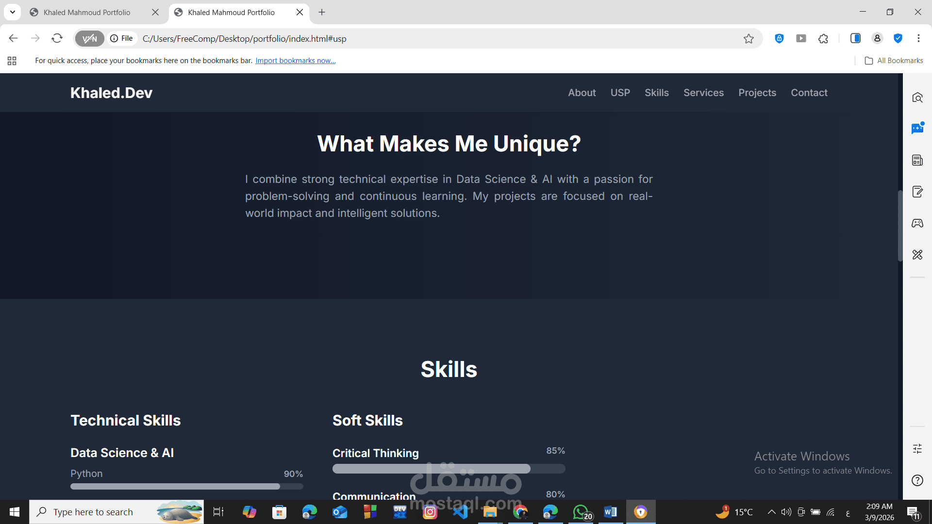ما يميزني (USP): إبراز الجوانب الفريدة التي تجعلك متميزًا في مجالك، مثل الجمع بين المهارات التقنية وحل المشكلات والتعلم المستمر.