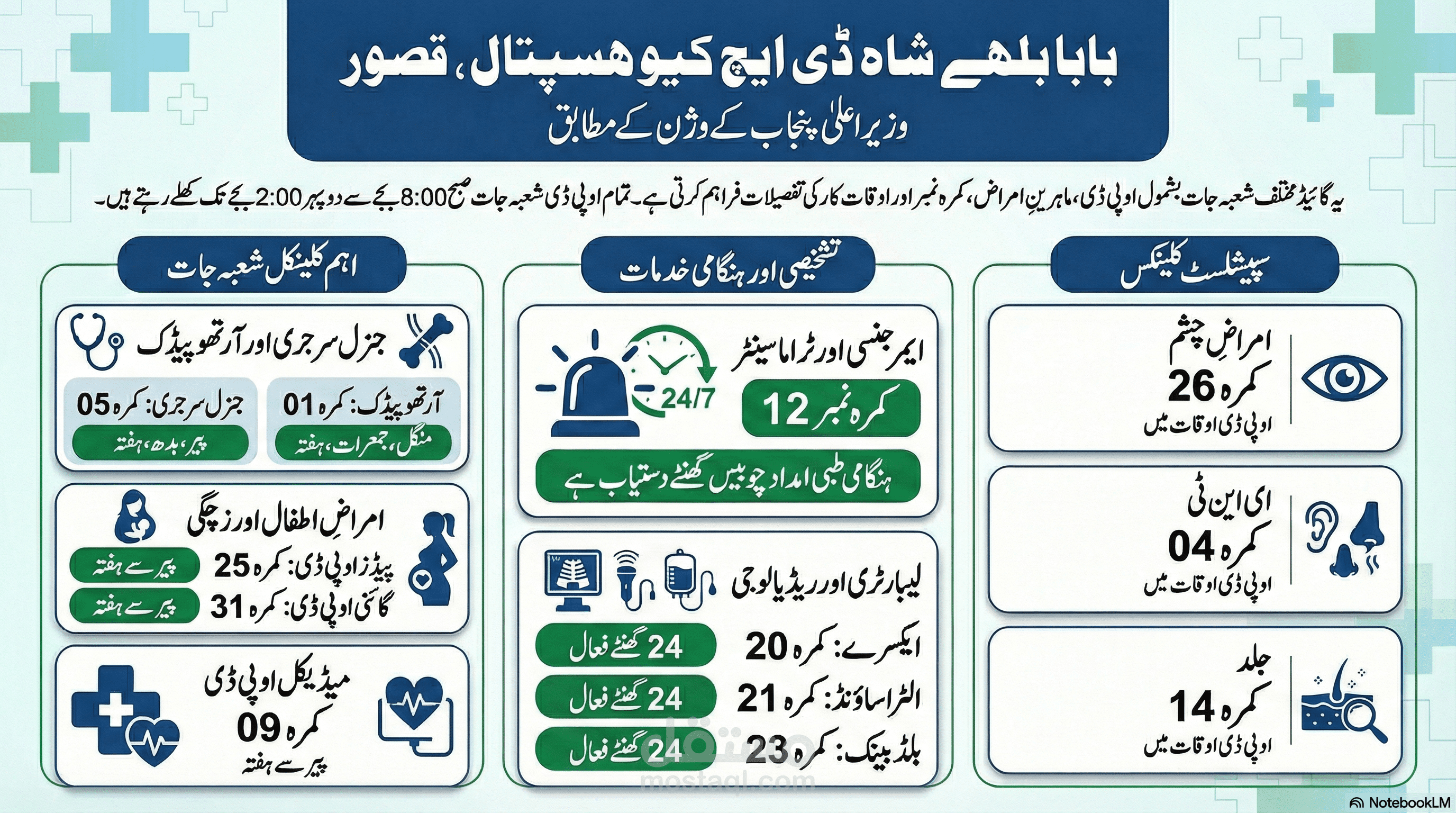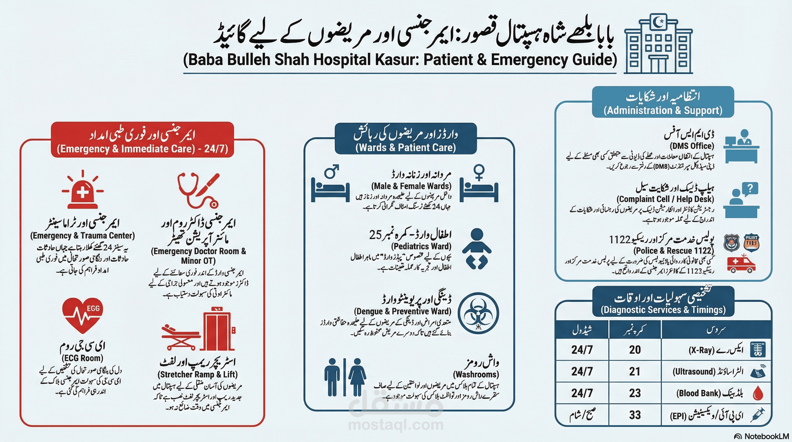 Designed and implemented a bilingual digital signage system for DHQ Kasur Hospital. Displays real-time OPD timings, consultant schedules, 24/7 emergency services, and patient guidance in clear Urdu & English. Improves visitor experience, reduces confusion, and supports smooth operations in waiting areas and reception.Arabic Version (≈340 characters)المشروع: عرض معلومات المستشفى على الشاشات الرقمية