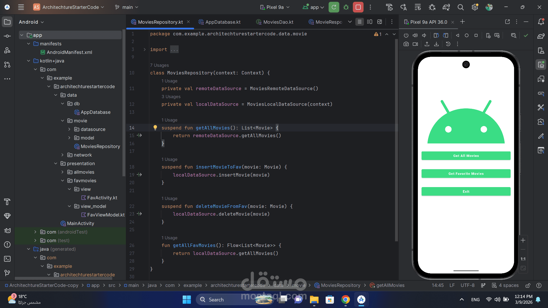 عرض قائمة الأفلام في الصفحة الرئيسية (Home Screen).