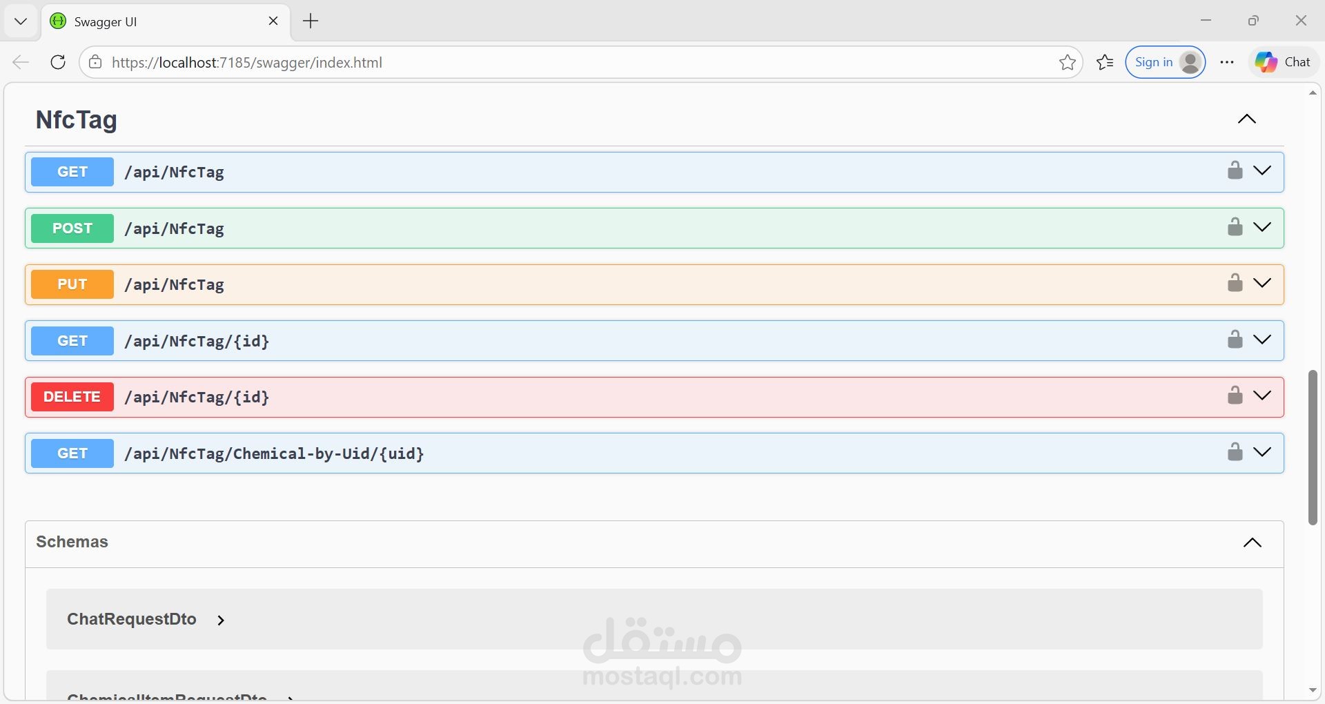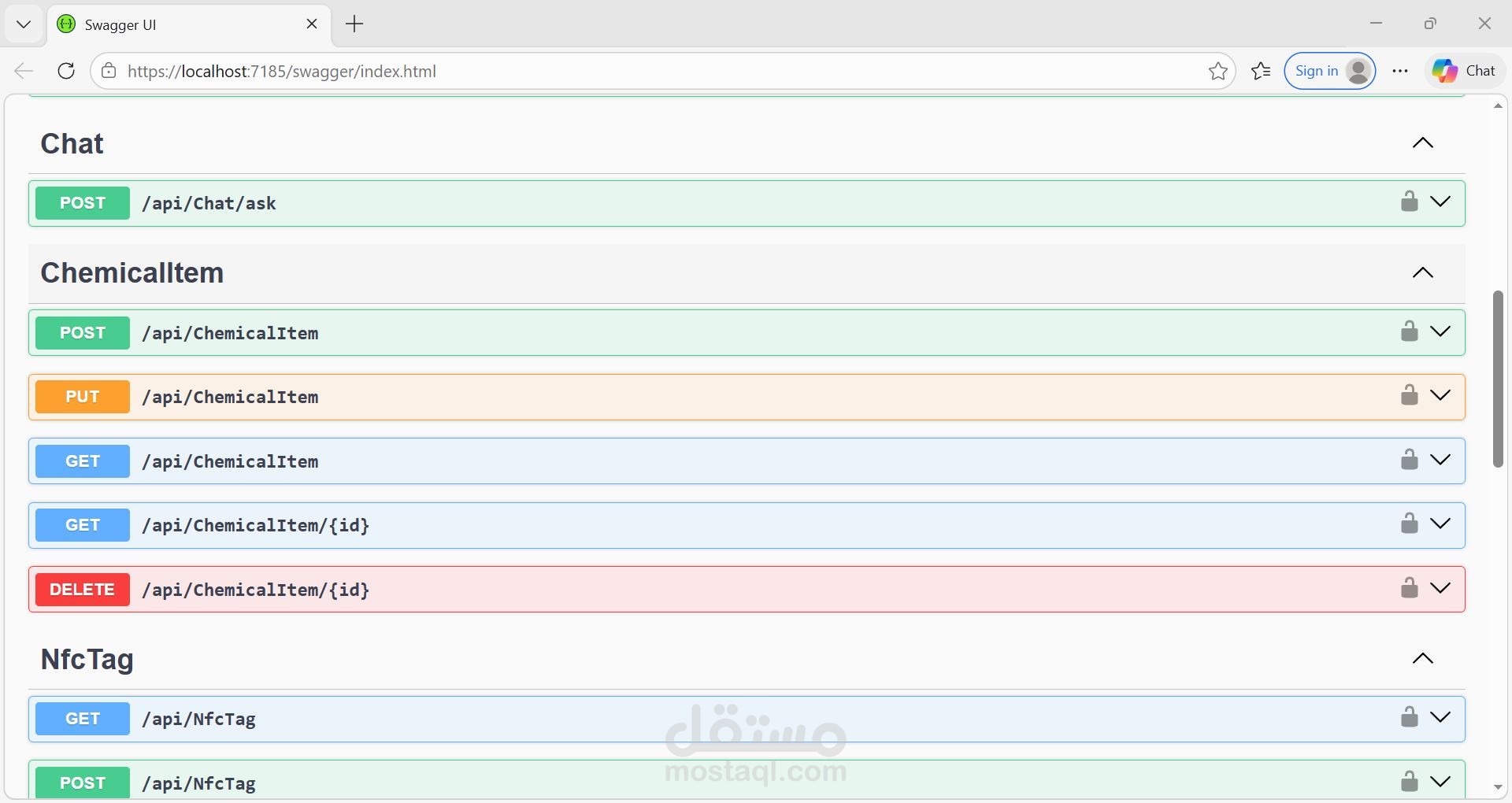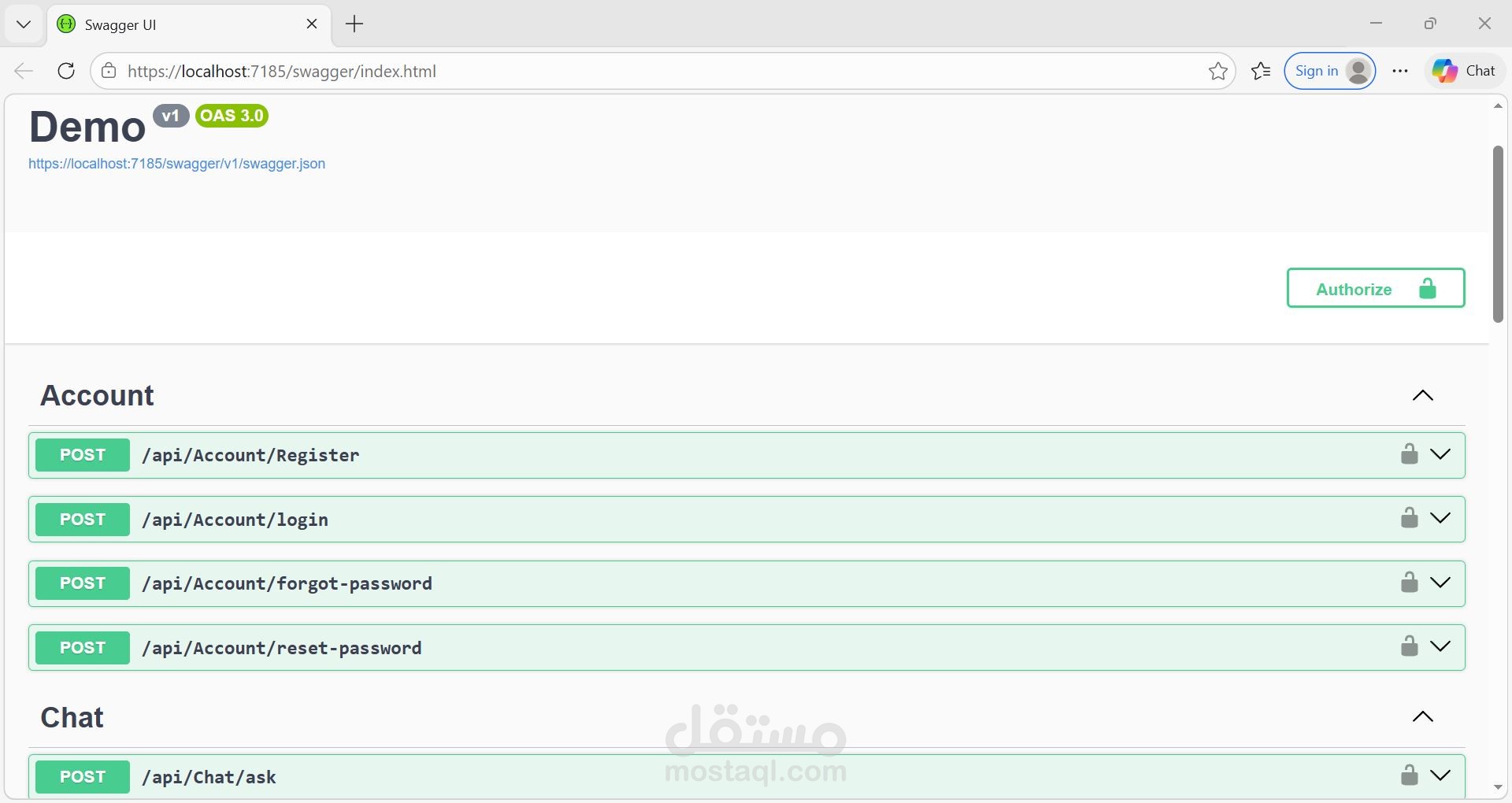 الواجهة الخلفية للنظام مبنية باستخدام ASP.NET Core Web API مع Entity Framework Core و SQL Server.