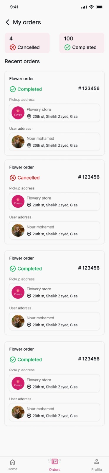 تأكيد الاستلام والتسليم: تدفق عمل (Workflow) واضح يبدأ من استلام الطلب وينتهي بإشعار "تم التوصيل بنجاح".