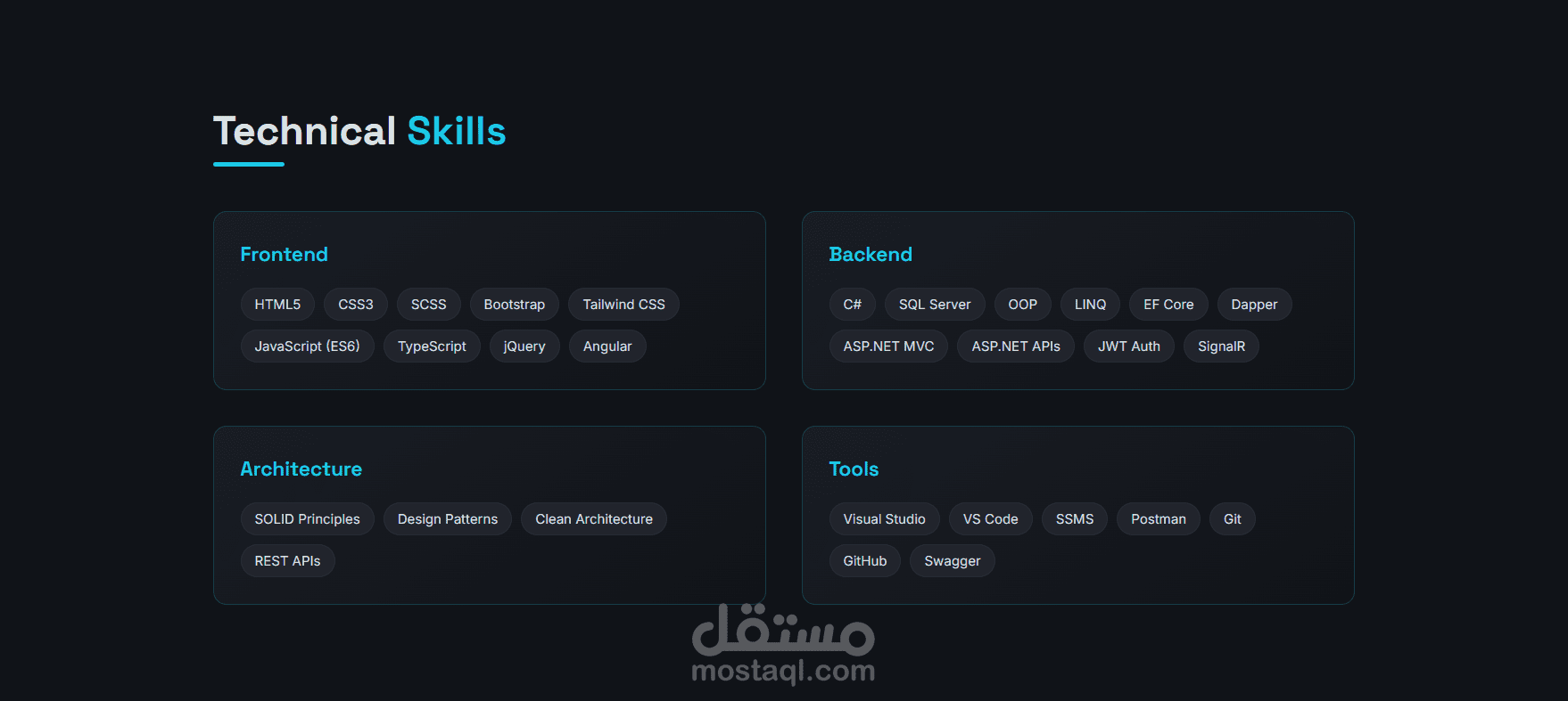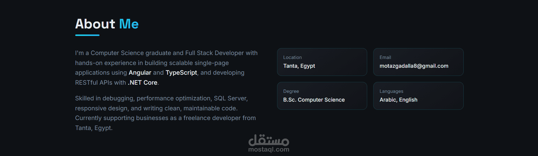 قسم من أنا يوضّح نبذة مختصرة عني ومهاراتي.