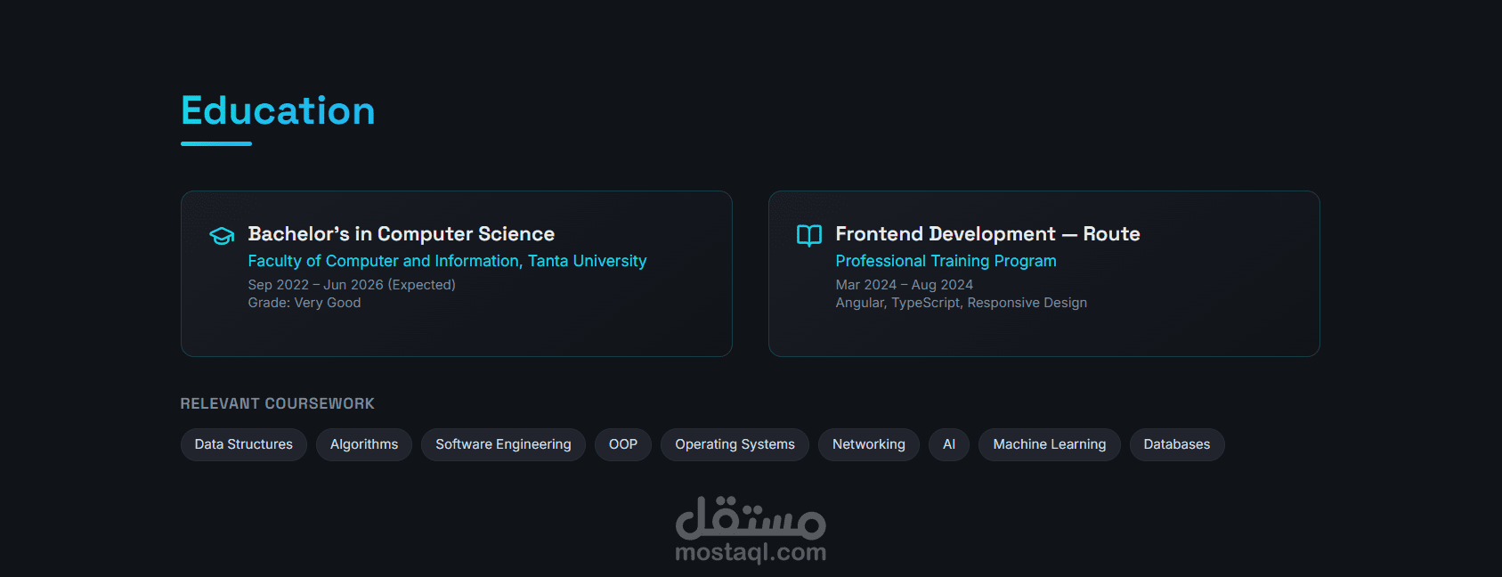 موقع بورتفوليو شخصي – React| تصميم حديث | متجاوب بالكامل