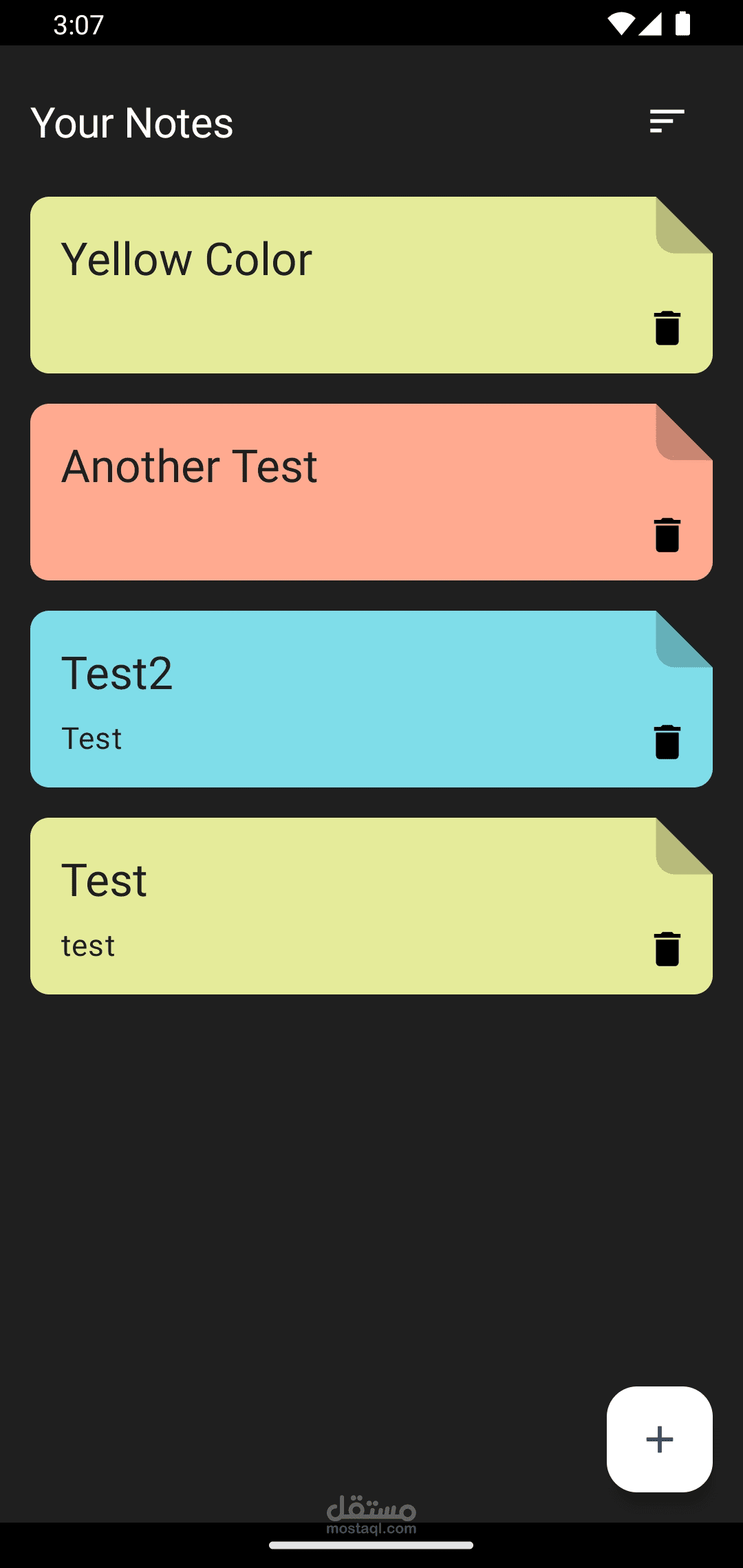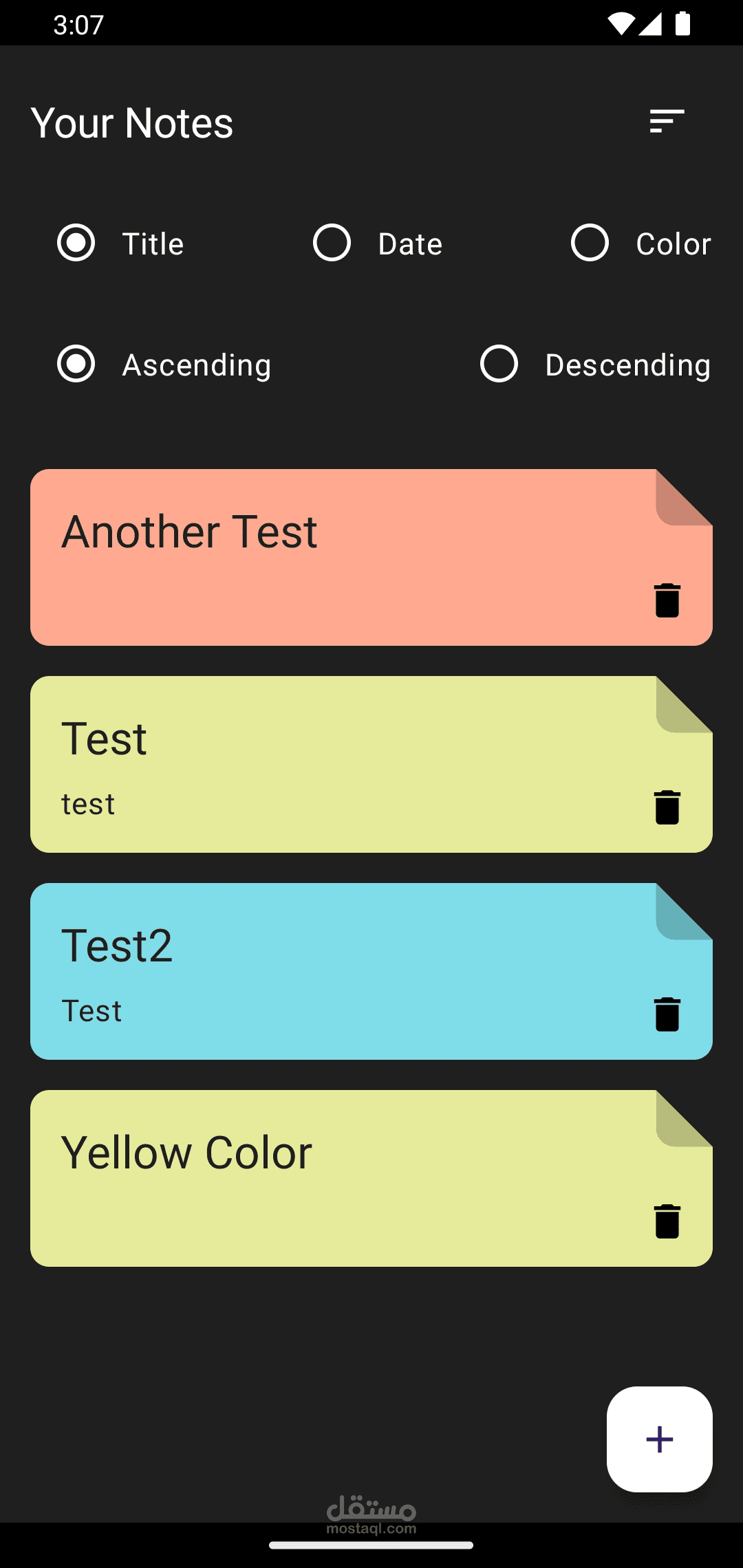 - إضافة ملاحظات جديدة مع إمكانية تحديد العنوان والمحتوى واللون.