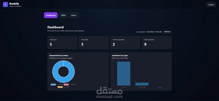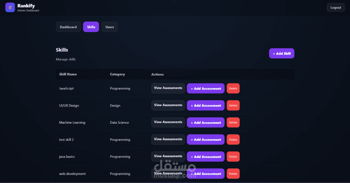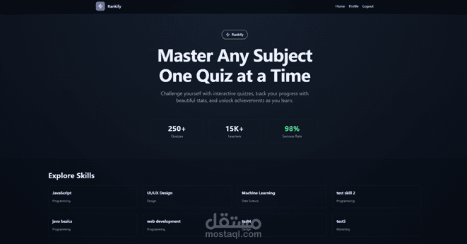 طوّرتُ نظام تقييم المهارات والشارات الرقمية، الذي يقيّم مهارات المستخدمين من خلال الاختبارات ويمنحهم شارات رقمية بناءً على أدائهم. يساعد النظام في تتبّع التقدم، والاعتراف بالإنجازات، وتحفيز التعلّم المستمر. تم بناؤه باستخدام Node.js وHTML وCSS وJavaScript وMongoDB.