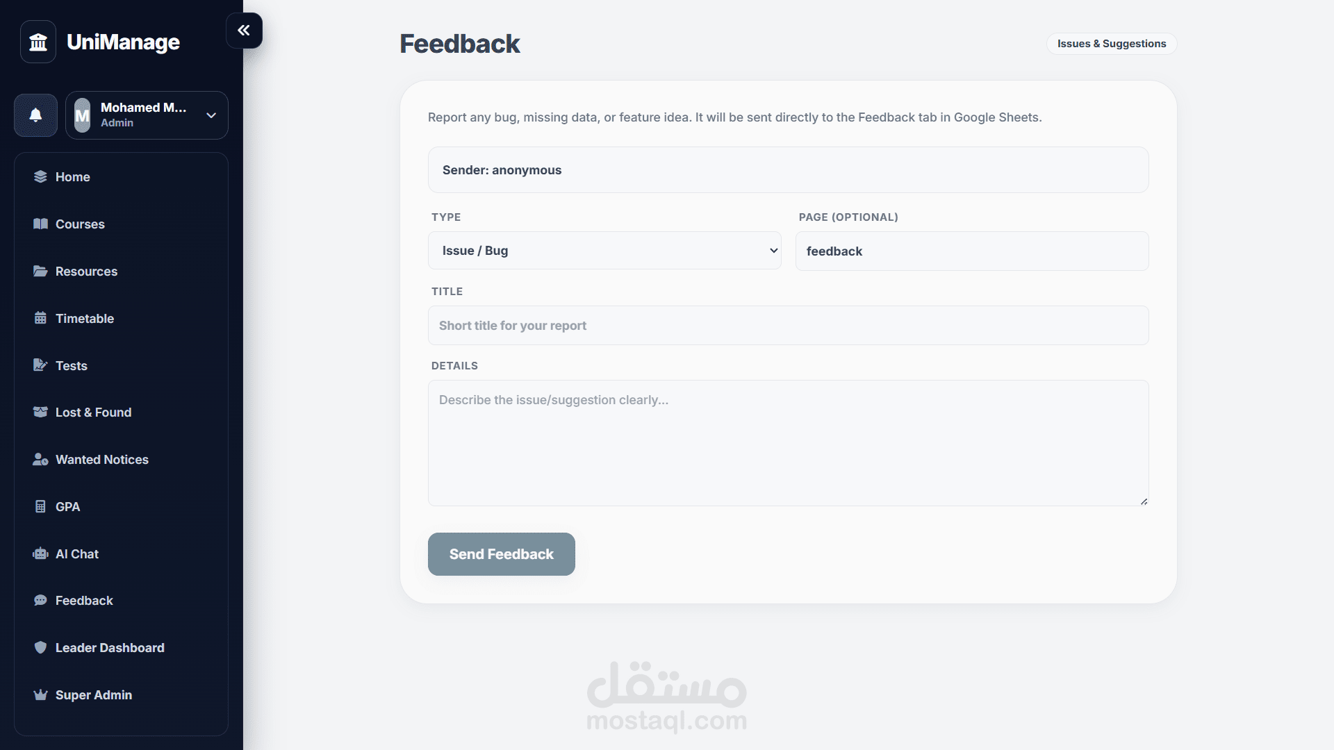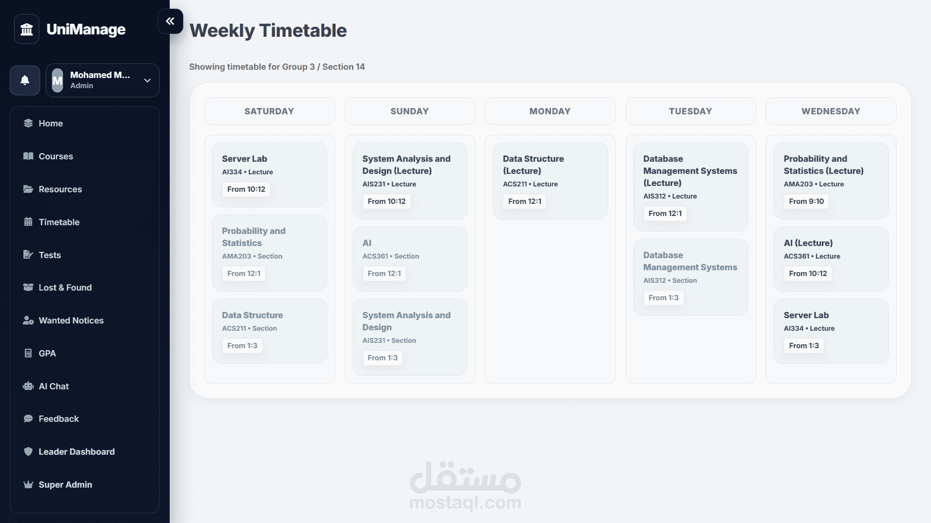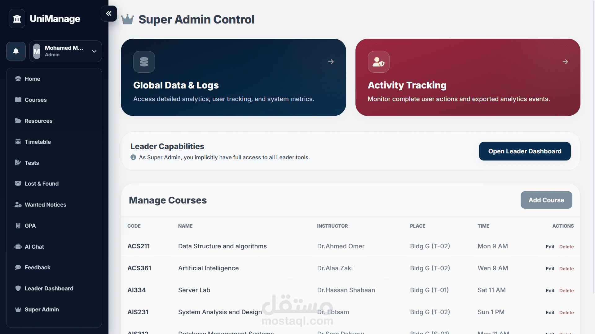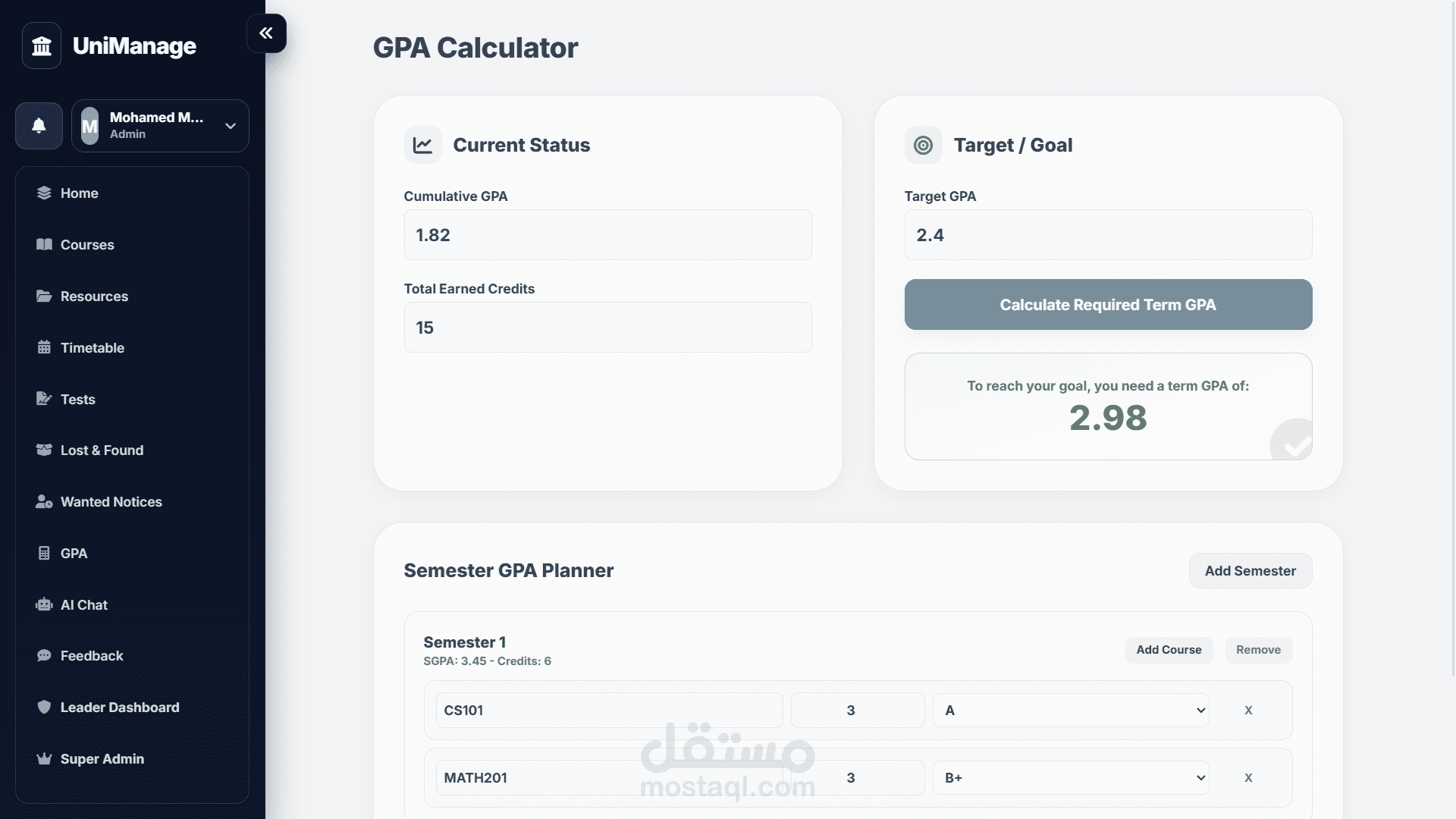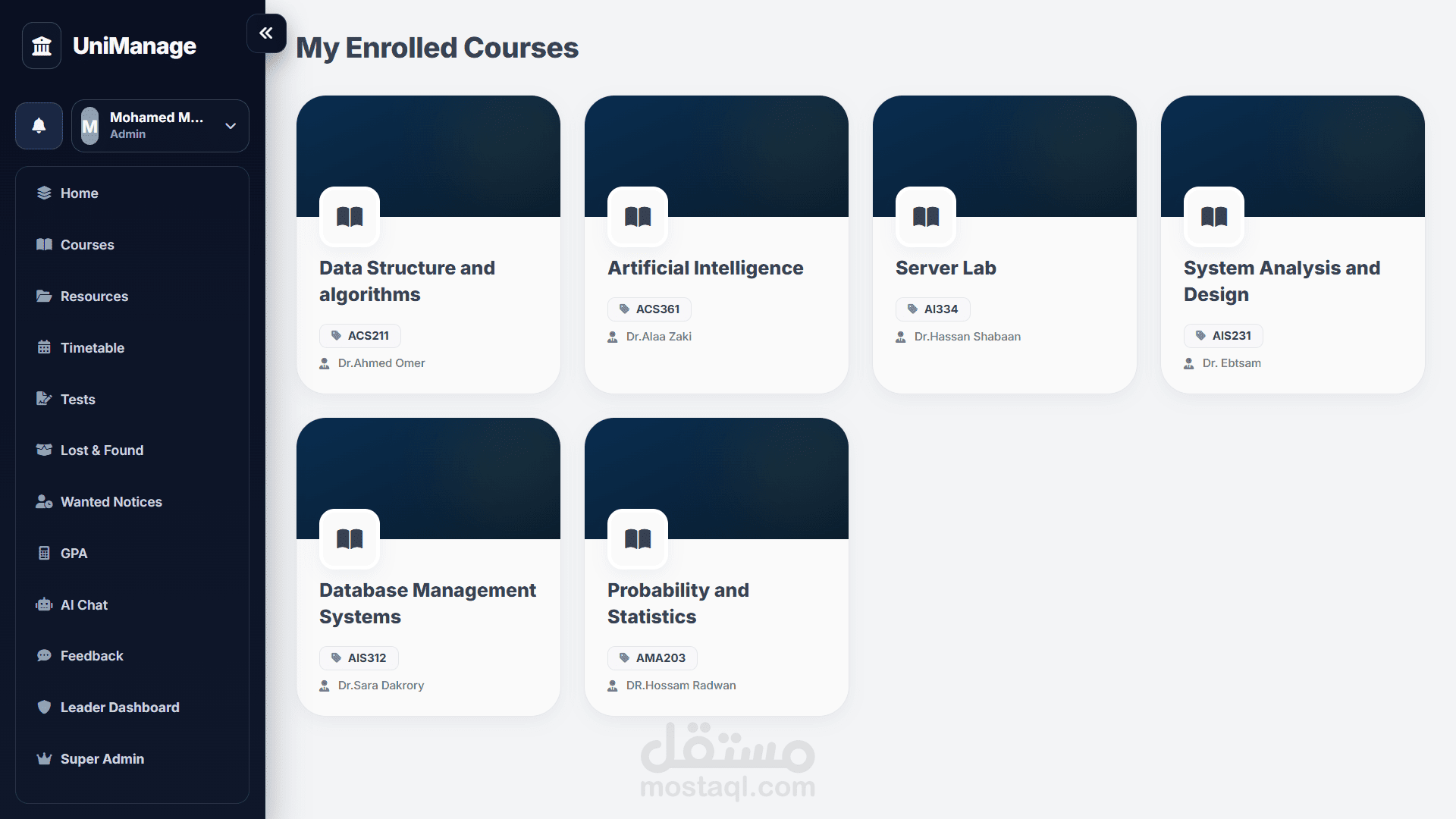ده هوا عبارة مشروع اشتغلت عليه بغرض واحد بس ، تسهيل كل شئ على الطالب من ادارة لكل شئ مع 9 مميزات كفيلة تغني الطالب عن أي سؤال ، صفحة كاملة لكل المواد مع الدكاترة الخاصين بالمادة وأماكن المحاضرات والسكاشن ومواعيدها ، جدول معمول حسب مجموعتك عشان متشوفتش أي حاجة ملهاش علاقة بيك ، صفحة كاملة لكل الموارد الخاصة بكل مادة سواء ملفات محاضرات او ملفات وتلخيصات من عمل الطلبة نفسهم ،حاسبة GPA عشان تبقى عارف المطلوب منك ايه عشان تحقق هدفك ، وصفحة امتحانات بالطريقة التقليدية والطريقة اللي طورتها انا بشكل شخصي واللي بتعتمد على التكرار بغرض التأكد من فهم الطالب الكامل لكل سؤال والاجابة.