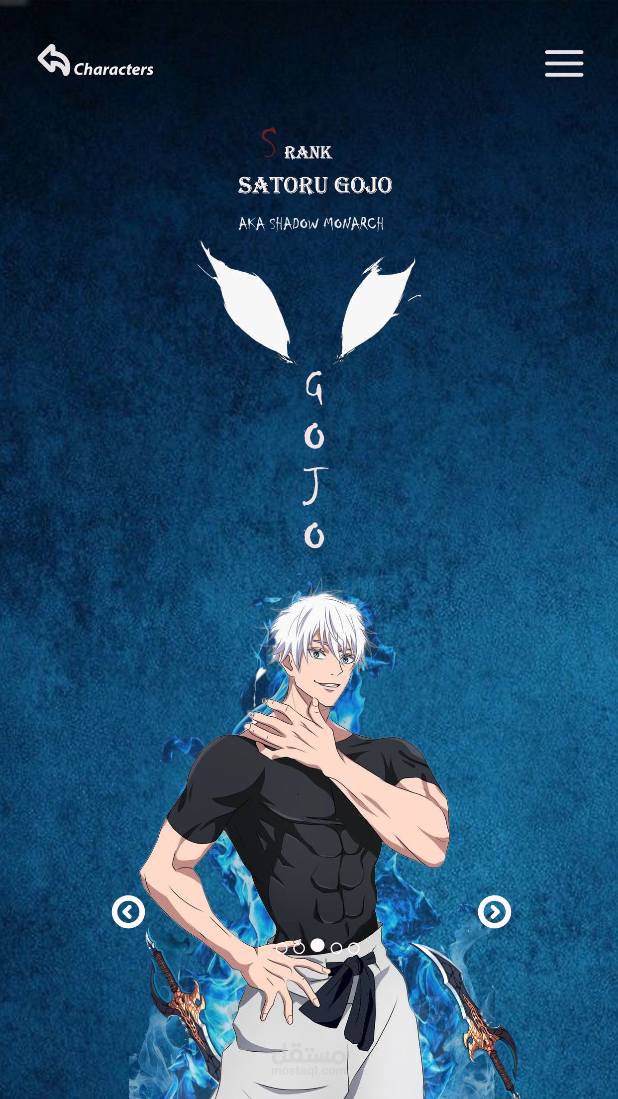 • Vertical Typography – Creative text layout for character names with wing accents