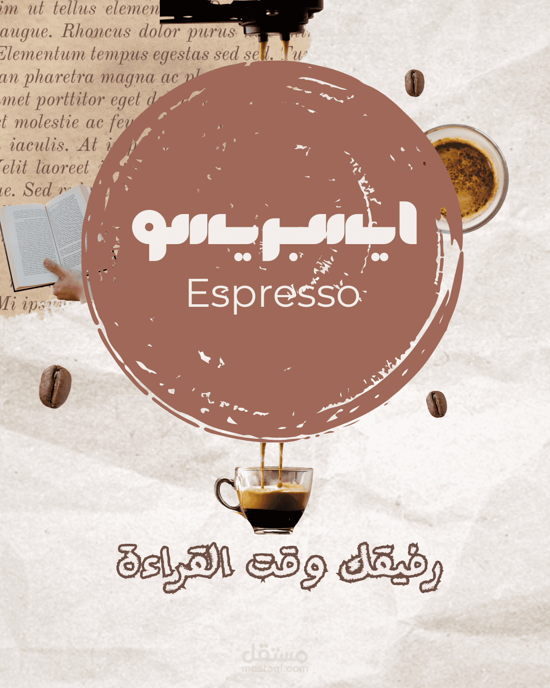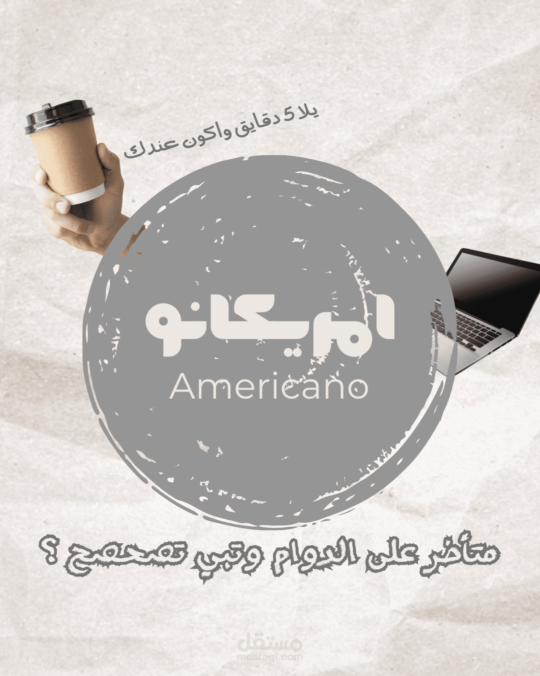 تصميم منشور إعلاني لمقهى مخصص للنشر على وسائل التواصل الاجتماعي. تم التركيز في التصميم على إبراز المنتج الرئيسي وخلق جو بصري جذاب يعكس هوية المقهى ويجذب انتباه الجمهور، مع استخدام عناصر تصميم متناسقة تساعد على إيصال الرسالة التسويقية بشكل واضح وبسيط.