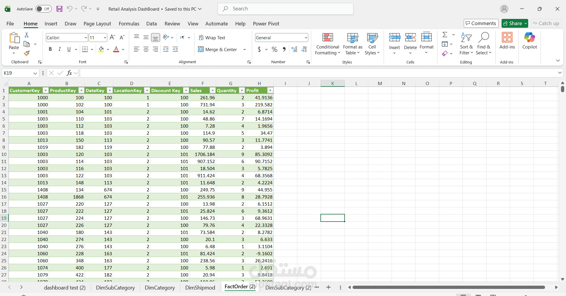بعد إعداد البيانات، قمتُ ببناء نموذج بيانات قوي يربط معاملات المبيعات بأبعاد العملاء والمنتجات والمناطق. مكّن هذا التكامل من إجراء تحليل متعدد الأبعاد سلس عبر مختلف قطاعات الأعمال وفئات المنتجات والفترات الزمنية، مما أتاح استكشافًا أعمق للعوامل المؤثرة على المبيعات والربحية.