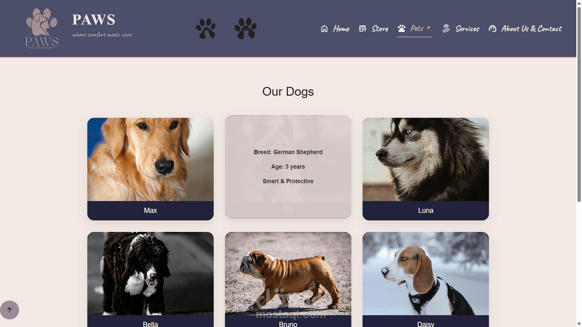 'Paws' is a frontend project created to simplify the online pet shopping experience. Leading a small team, I focused on turning a concept into a fully functional website using HTML and CSS. I ensured our code was organized and our design was consistent across all pages, meeting our project deadlines and technical requirements.