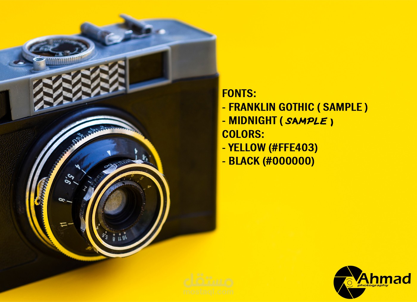 هوية بصرية تتألف من لوجو و كونسبت مع أنواع الخطوط و الألوان المستخدمة و صورة تسويقية