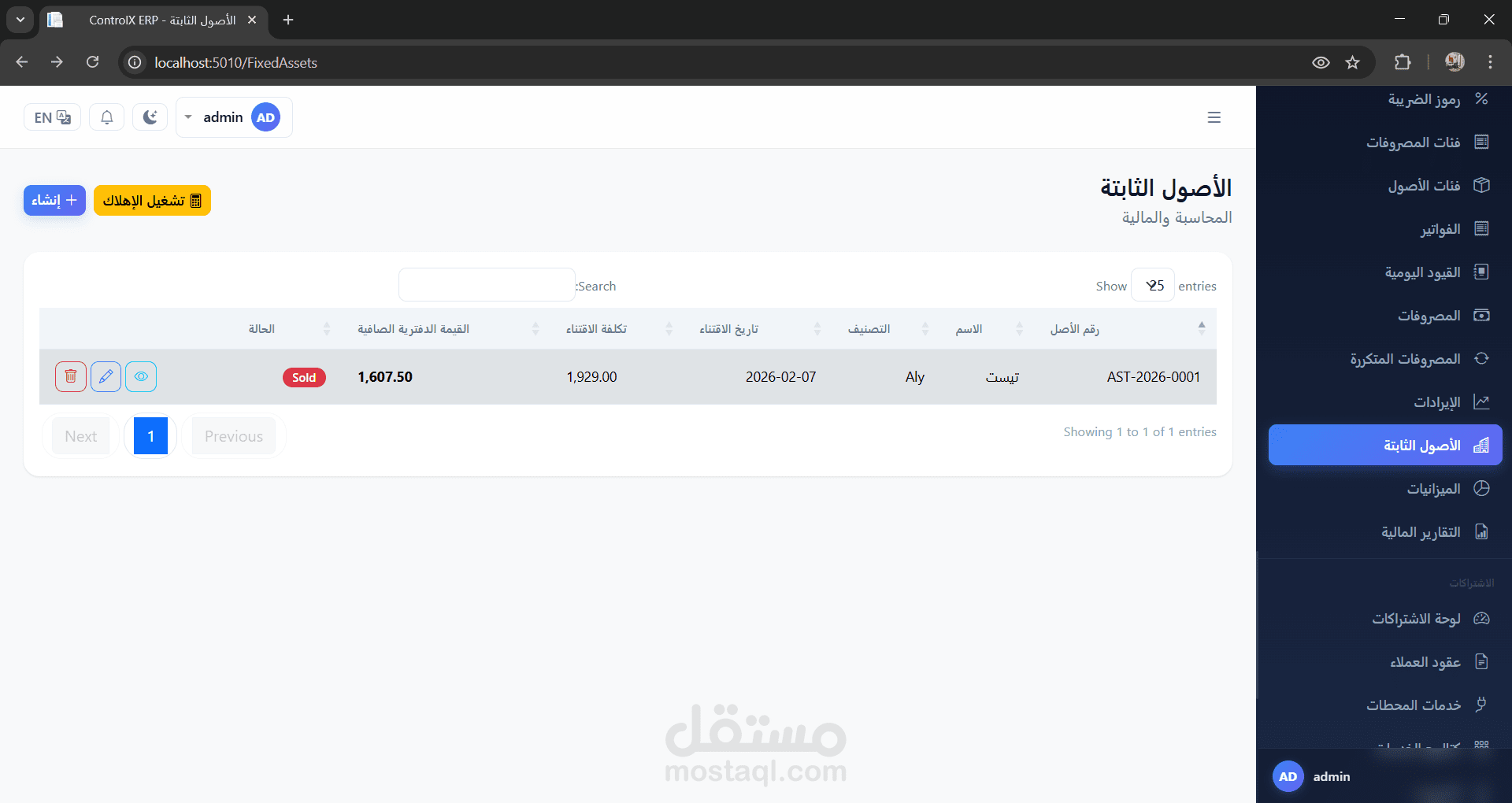 Fixed Assets أصول ثابتة، قطع غيار، مستودع