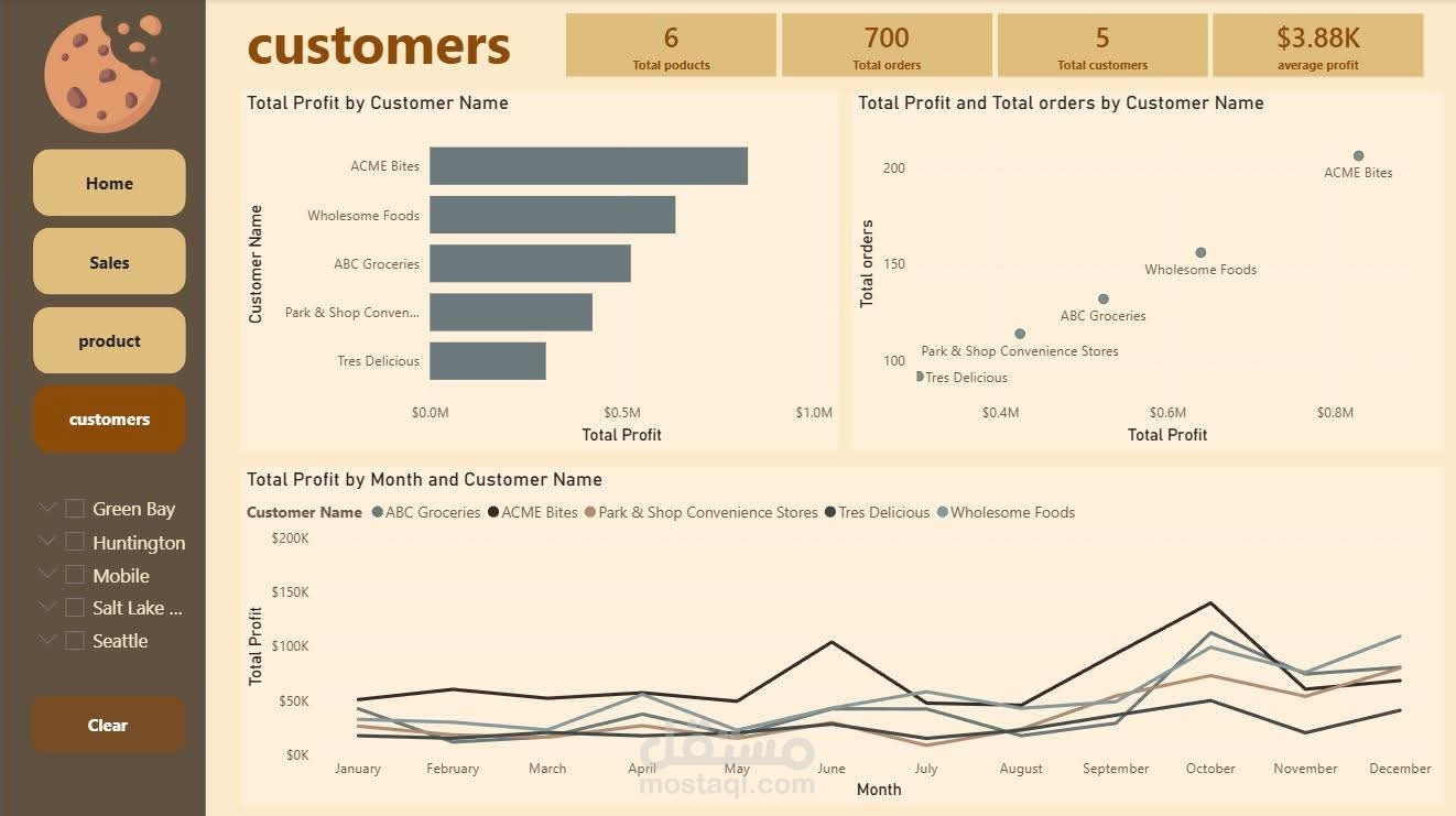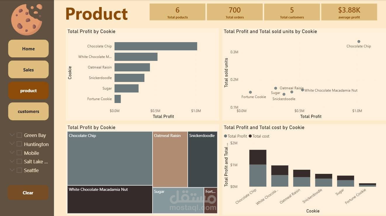 حبيت أشارك مشروع صغير اشتغلت عليه لتحليل بيانات مبيعات الكوكيز. الفكرة كانت إني أحول الأرقام الكتير الموجودة في الداتا إلى شكل بصري سهل يساعد على فهم المبيعات بشكل أسرع.