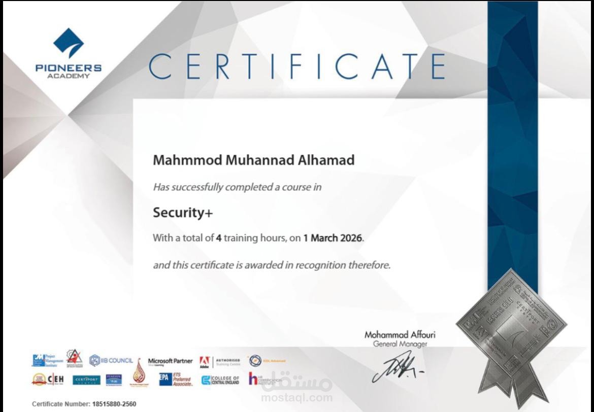 دورة Security+ (CompTIA Security+) هي شهادة أساسية في الأمن السيبراني، معترف بها عالميًا، وتركّز على بناء قاعدة قوية في حماية الشبكات والأنظمة وإدارة المخاطر. تعتبر نقطة انطلاق مثالية للمبتدئين والمهنيين الراغبين في دخول مجال أمن المعلومات.