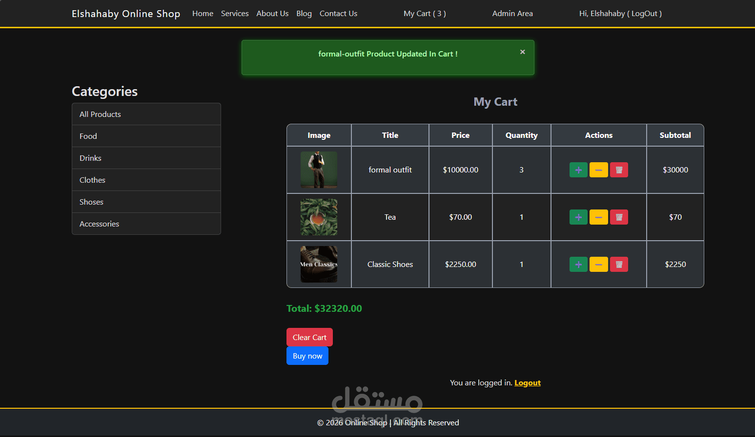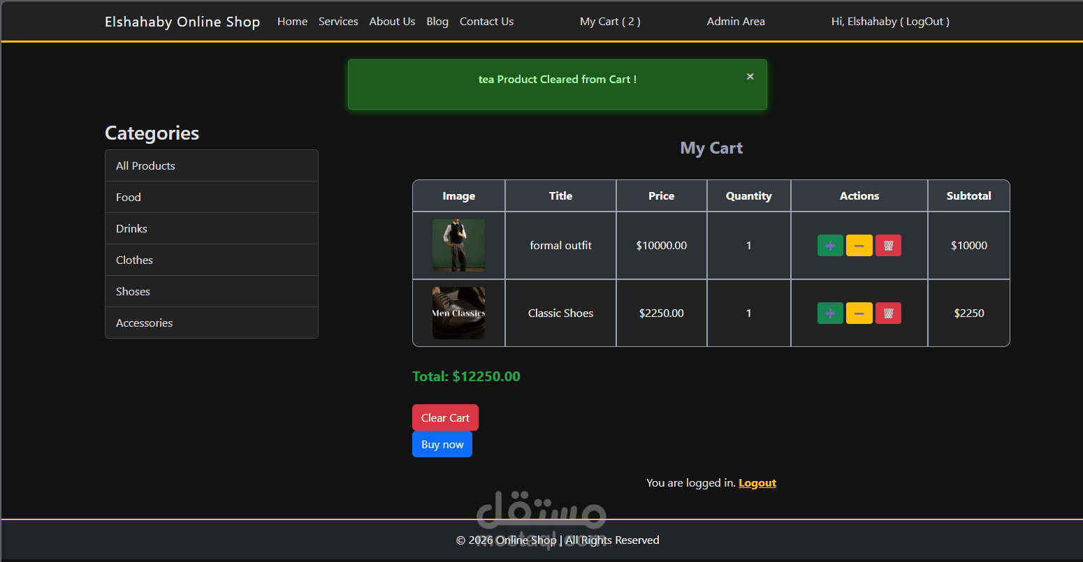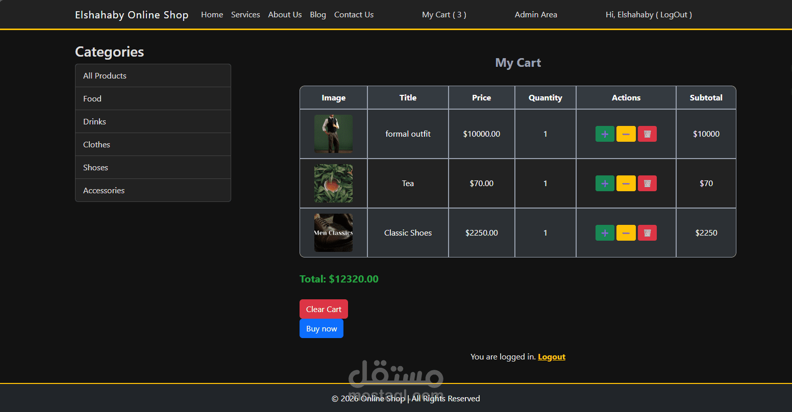 تطبيق تجارة إلكترونية ديناميكي Online Shop تم تطويره باستخدام Node.js وTypeScript وExpress وفق نمط MVC، مع الاعتماد على MongoDB وMongoose لإدارة البيانات. يدعم المشروع تسجيل الدخول وإنشاء الحساب باستخدام session-based authentication، وإدارة المنتجات والتصنيفات وعربة التسوق (Cart) والطلبات(Orders)، بالإضافة إلى صفحات Admin للتحكم في المحتوى والمنتجات. كيوفر واجهة استخدام سهلة مبنية باستخدام محرك القوالب EJS لعرض الصفحات بشكل سلس(dynamic page rendering)، مع تطبيق data validation وerror handling بشكل منظم لضمان استقرار النظام وتحسين تجربة المستخدم.