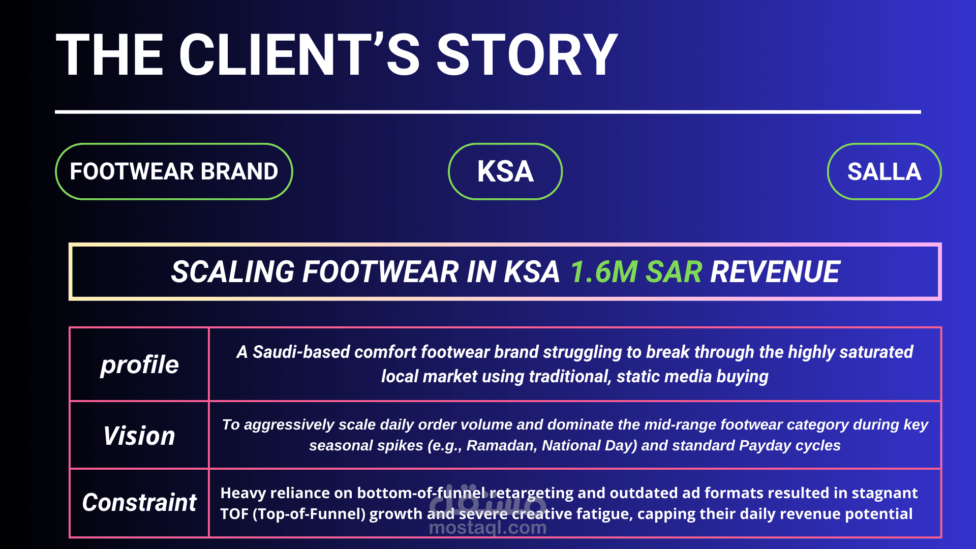 Scaled a KSA comfort footwear brand to 1,642,254 SAR using DR-UGC and omni-channel discovery commerce