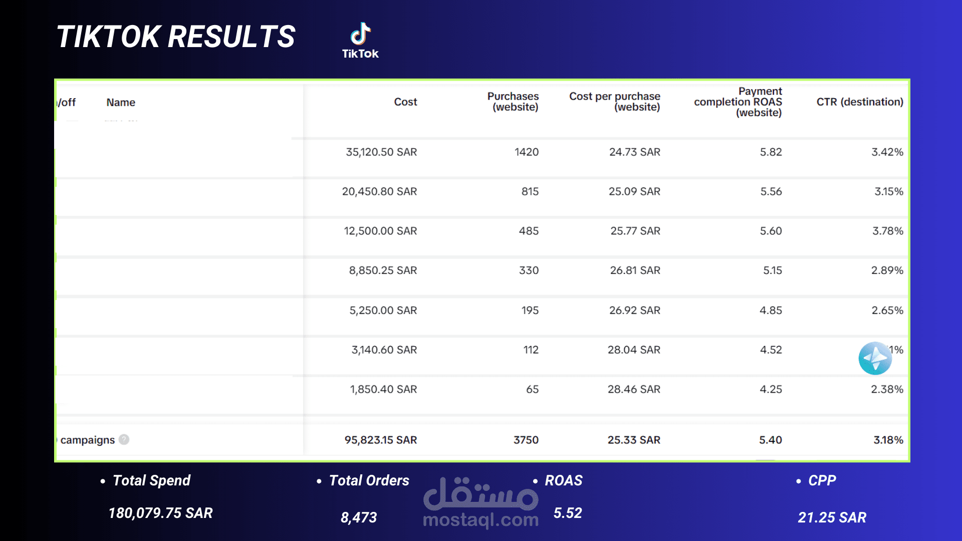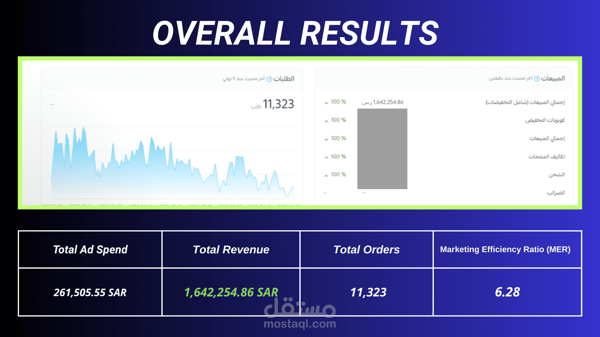 • 6.28 Marketing Efficiency Ratio (MER) with 261,505.55 SAR in total ad spend