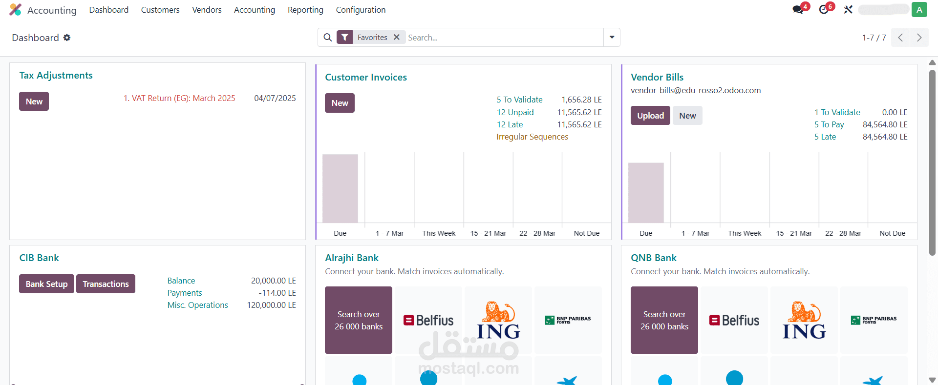بإعداد نظام المحاسبة بالكامل على Odoo بما يتناسب مع احتياجات الشركات التجارية والخدمية، مع تنظيم العمليات المالية لضمان دقة التقارير وسهولة متابعة الحسابات.