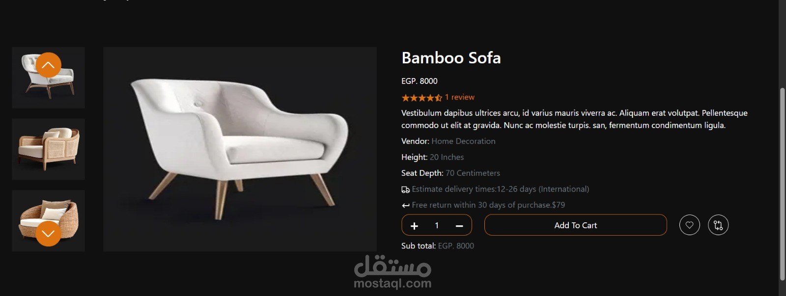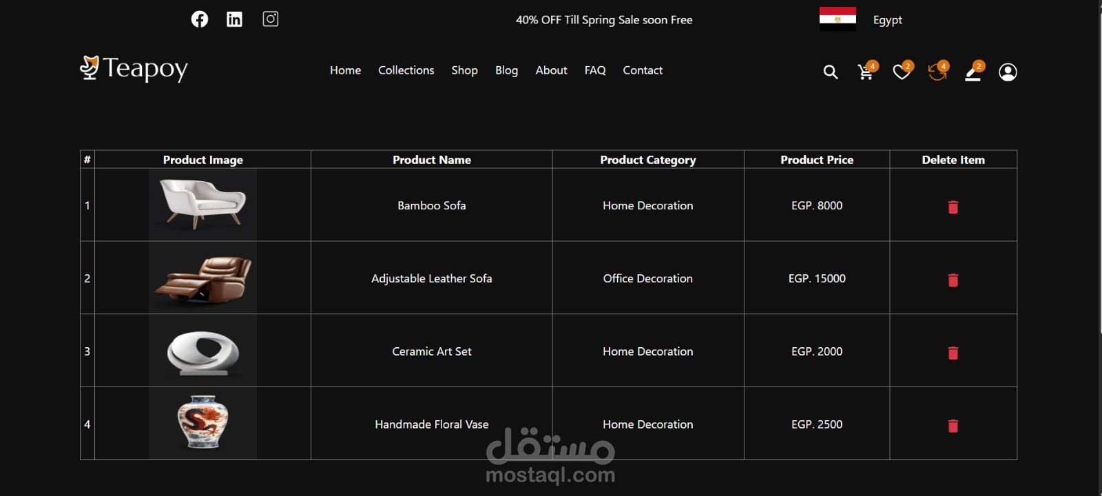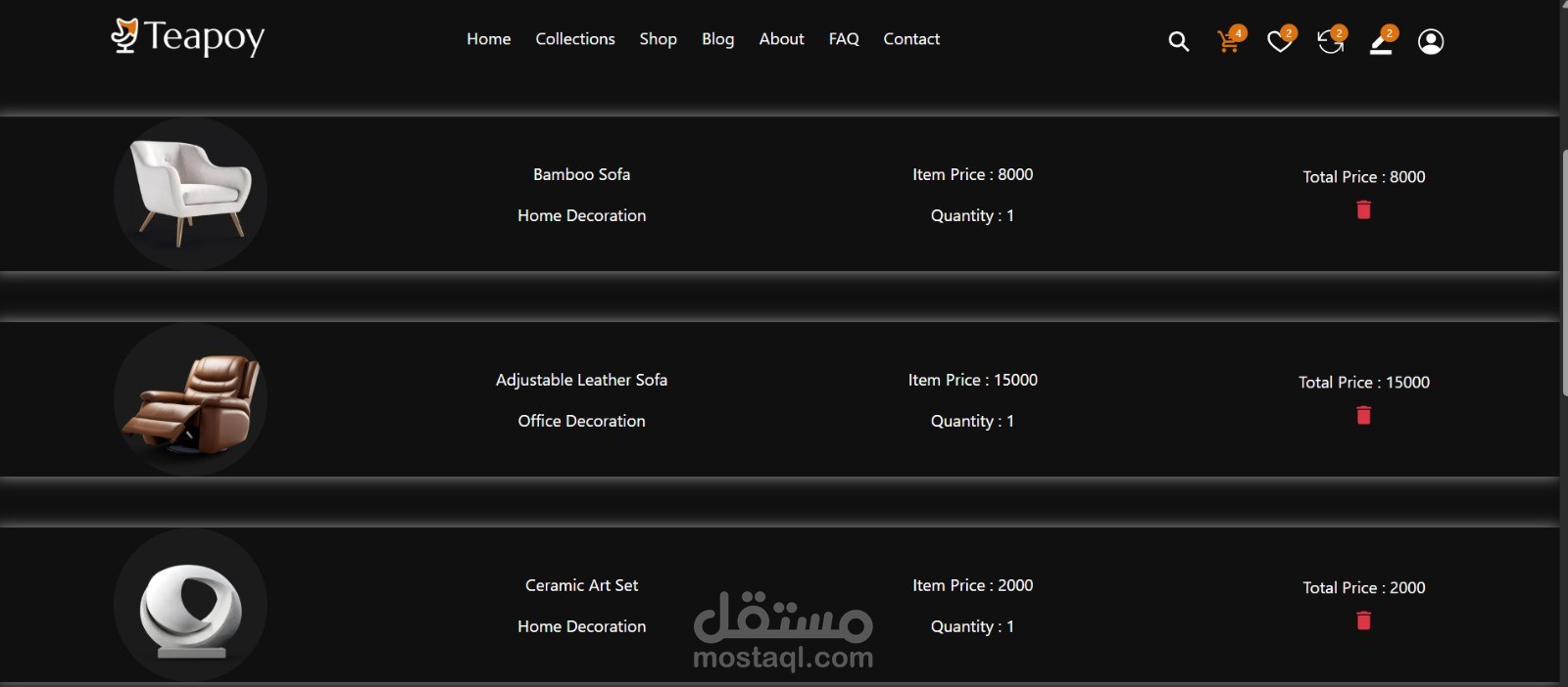 قمت بتطوير موقع حديث لعرض منتجات الديكور باستخدام React.js و JavaScript، مع تصميم واجهة مستخدم جذابة وسريعة الاستجابة لعرض المنتجات بشكل احترافي.