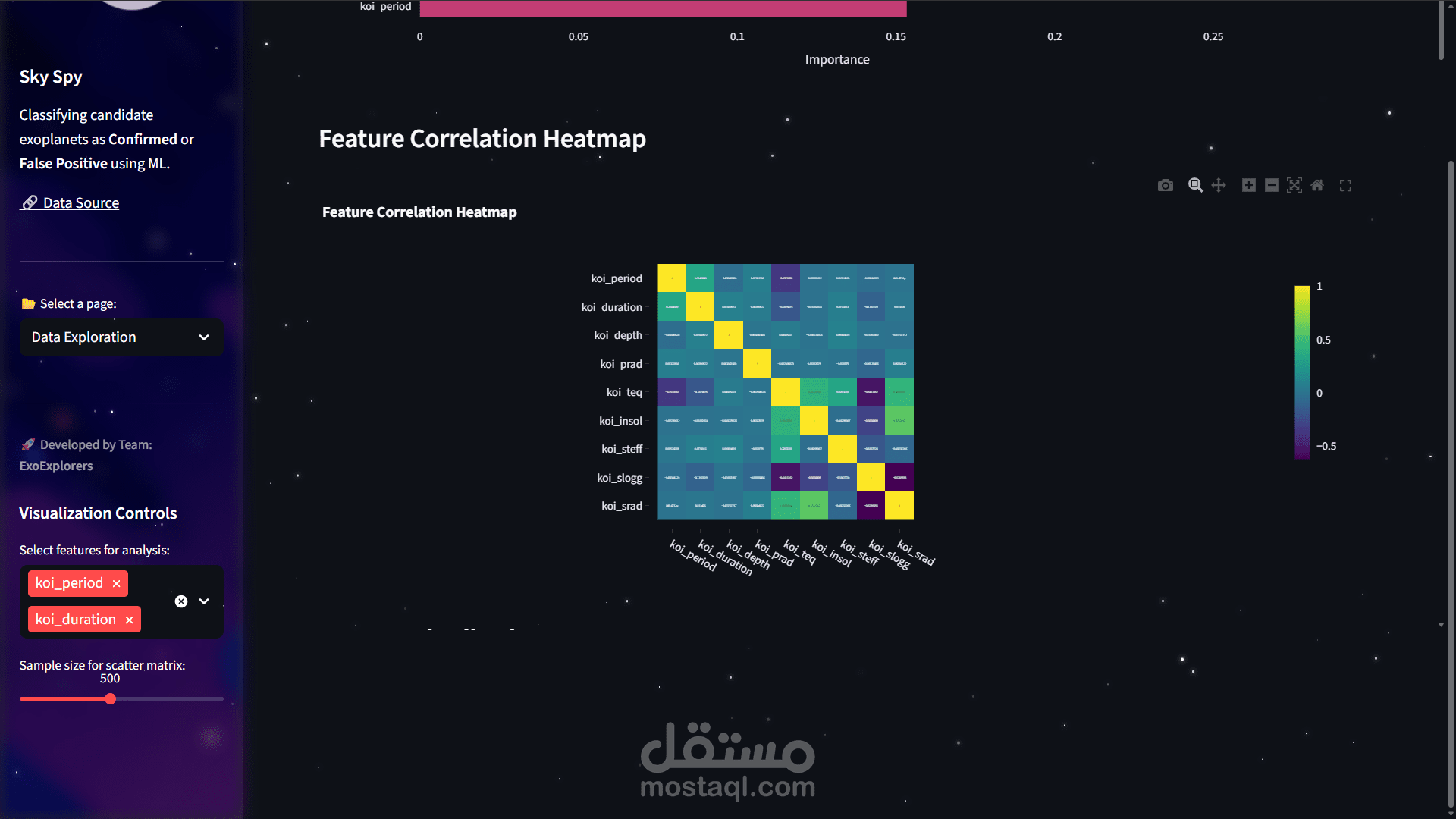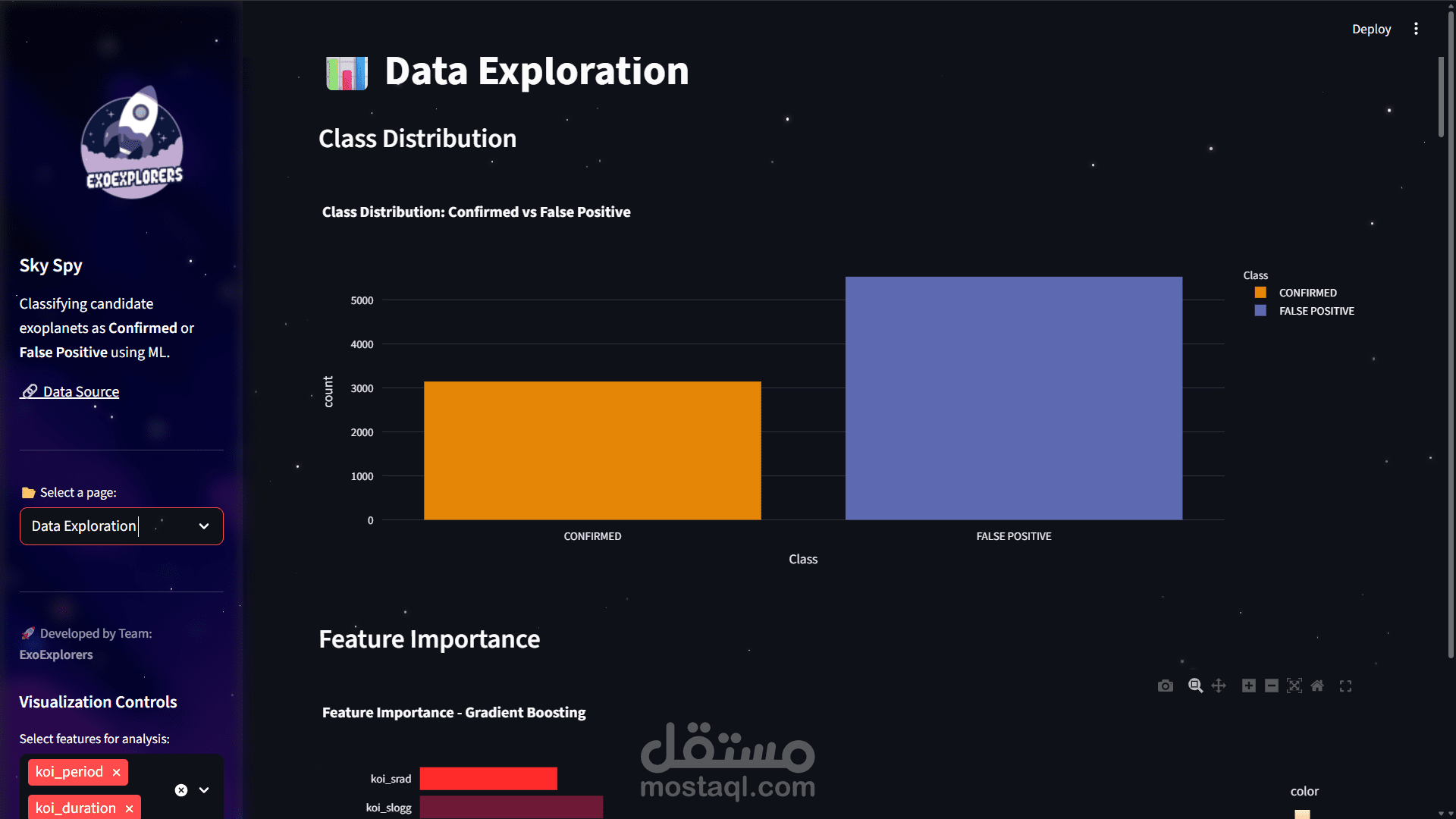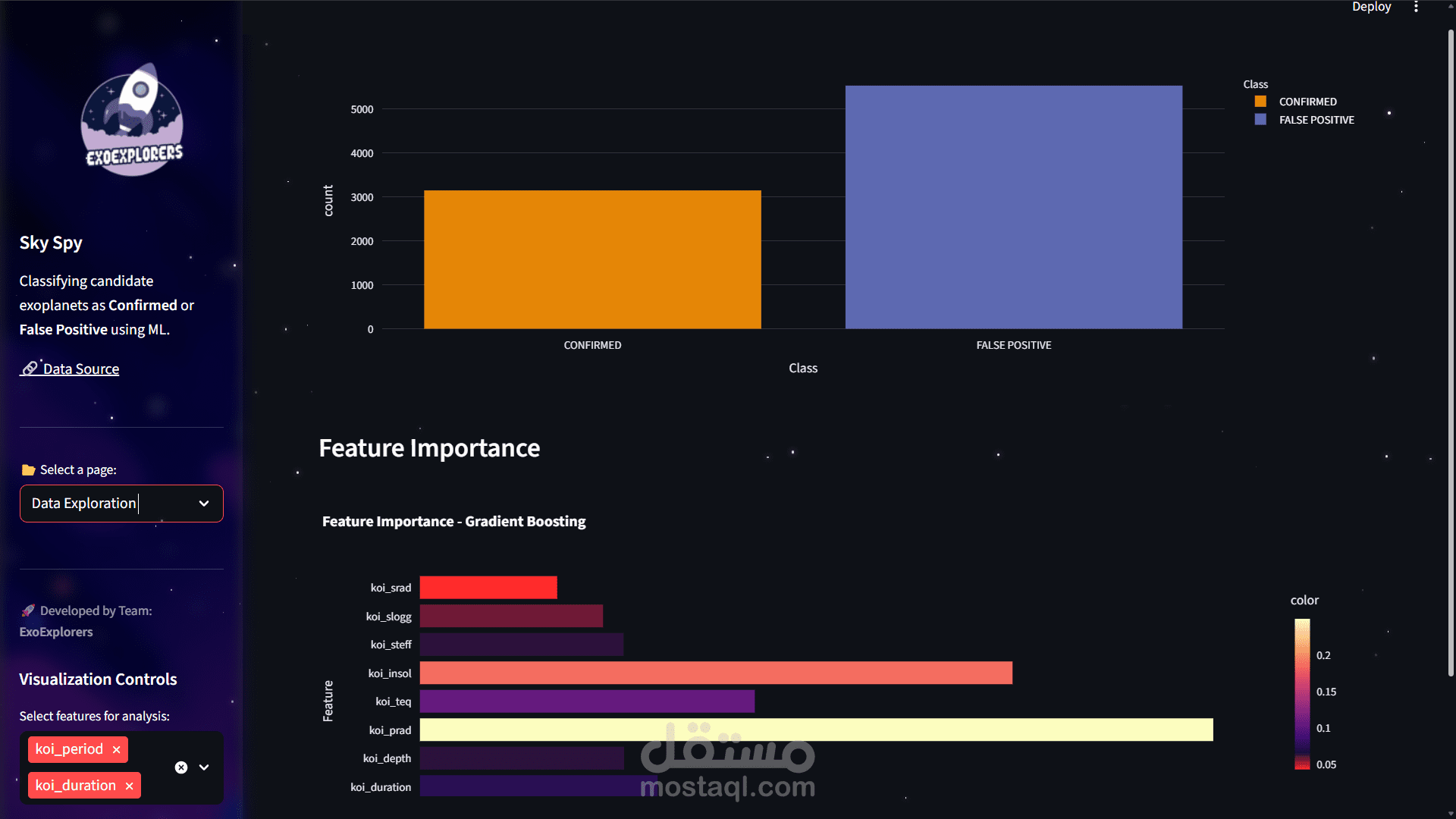 Design the ui for an exoplanet detection and code the streamlit code for it and make the visualization data
