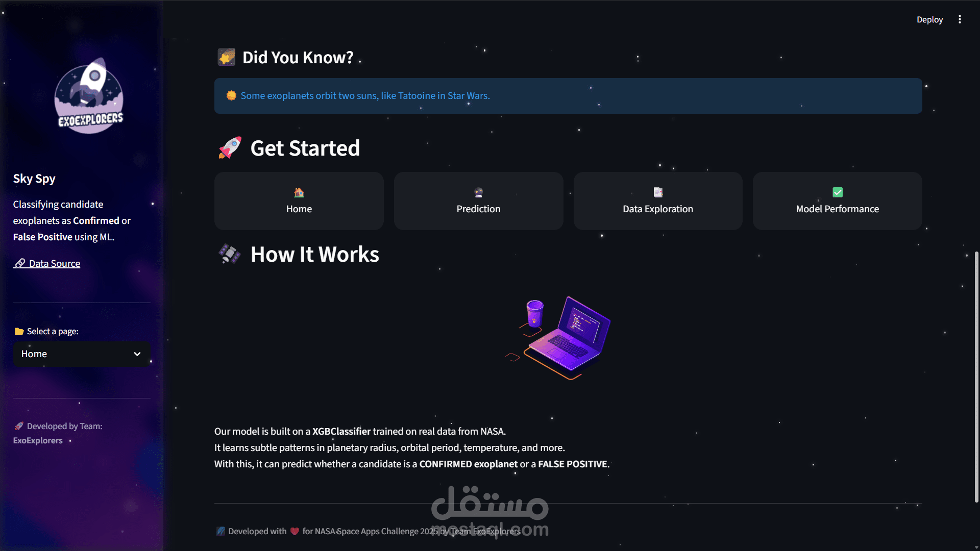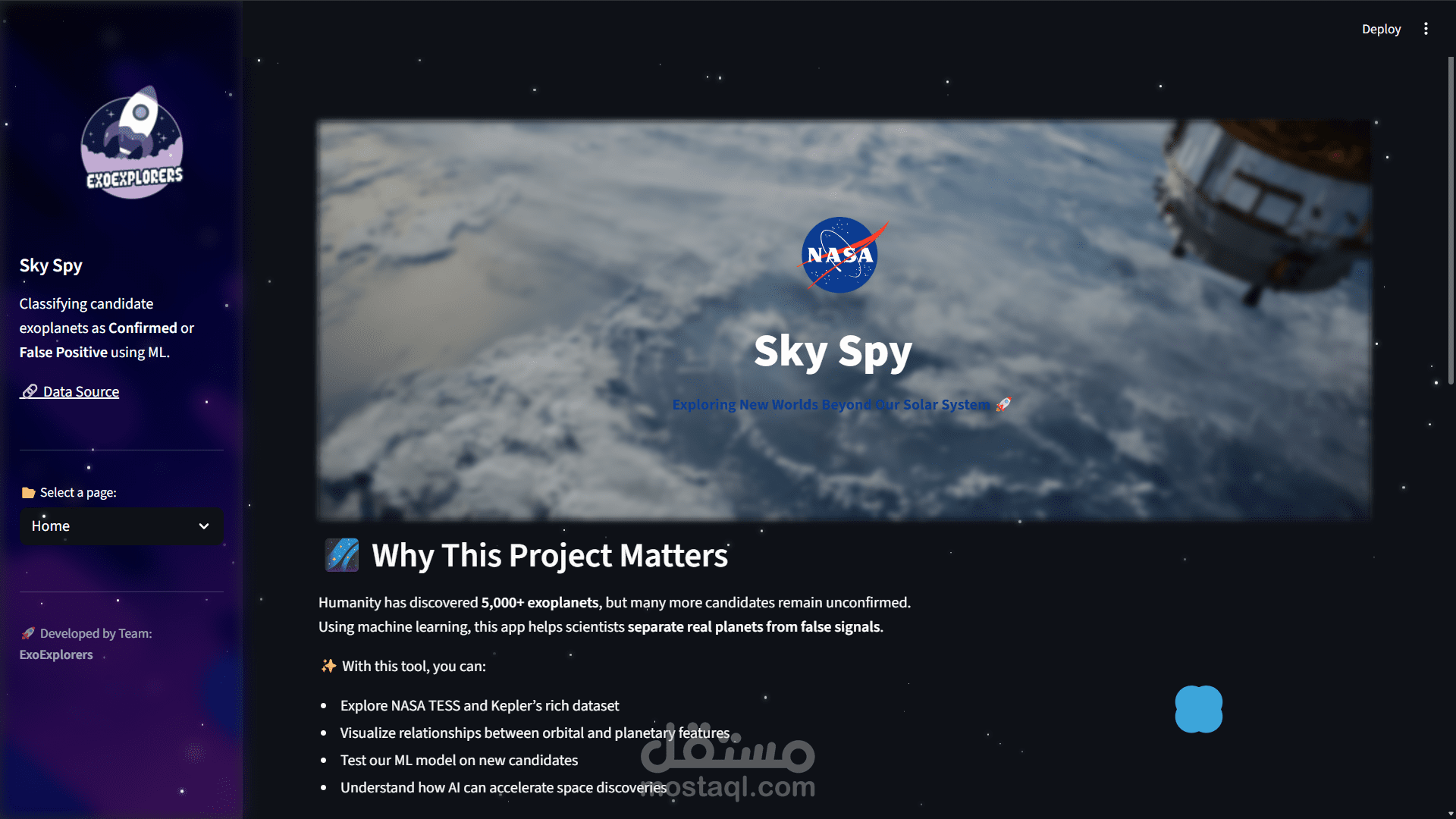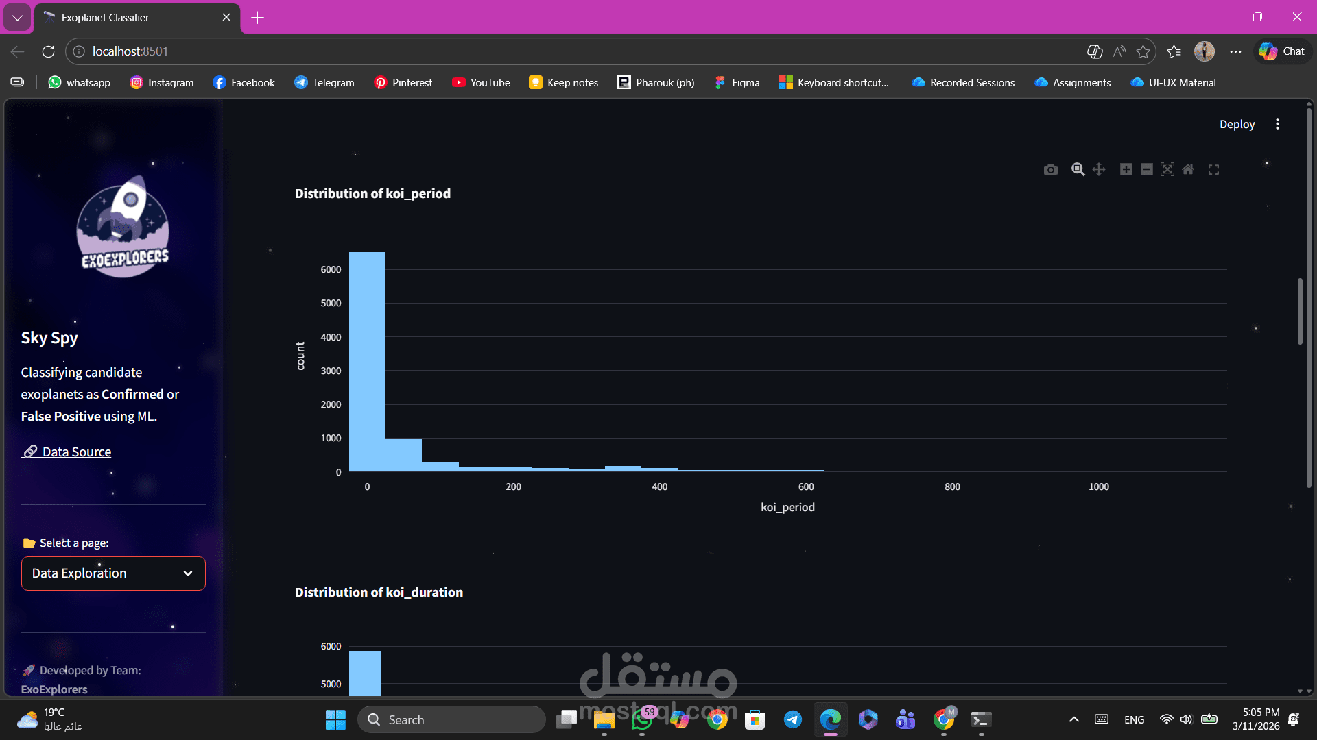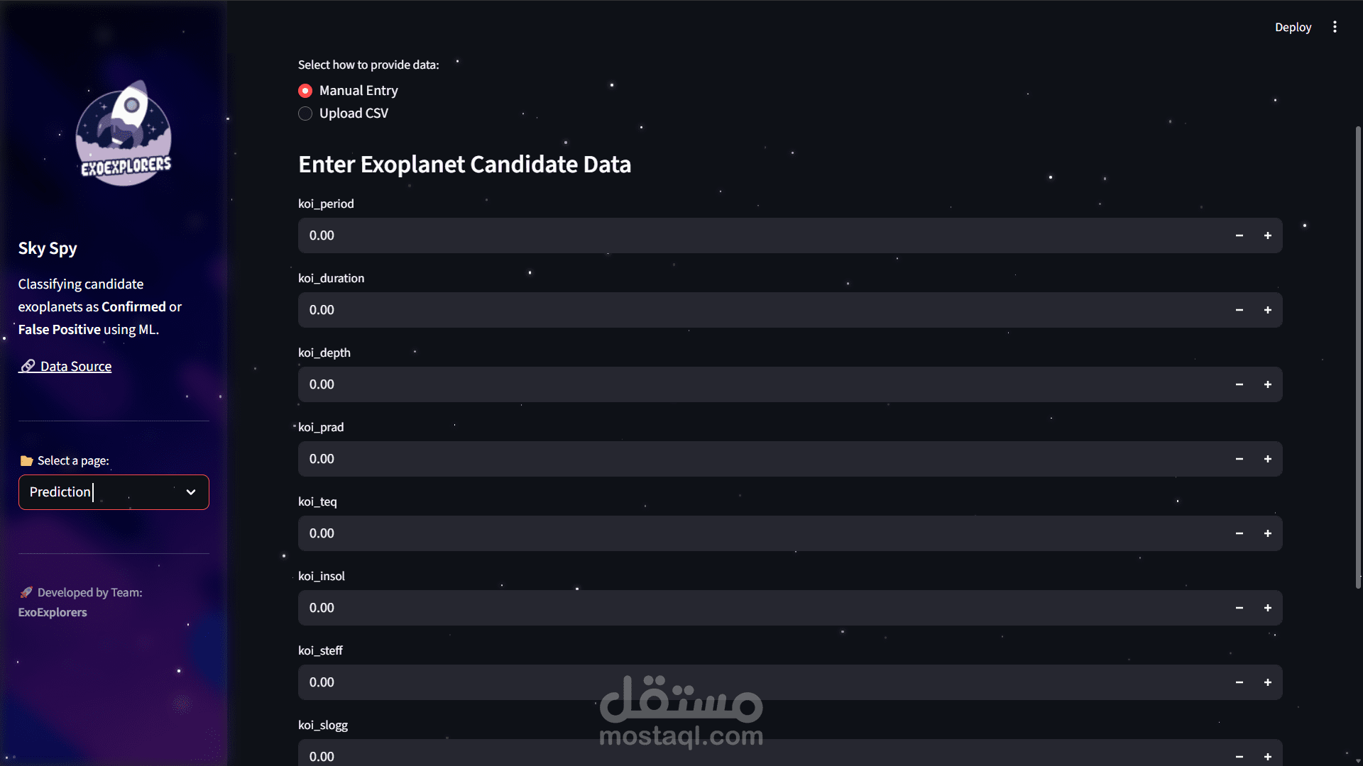 Design the ui for an exoplanet detection and code the streamlit code for it and make the visualization data