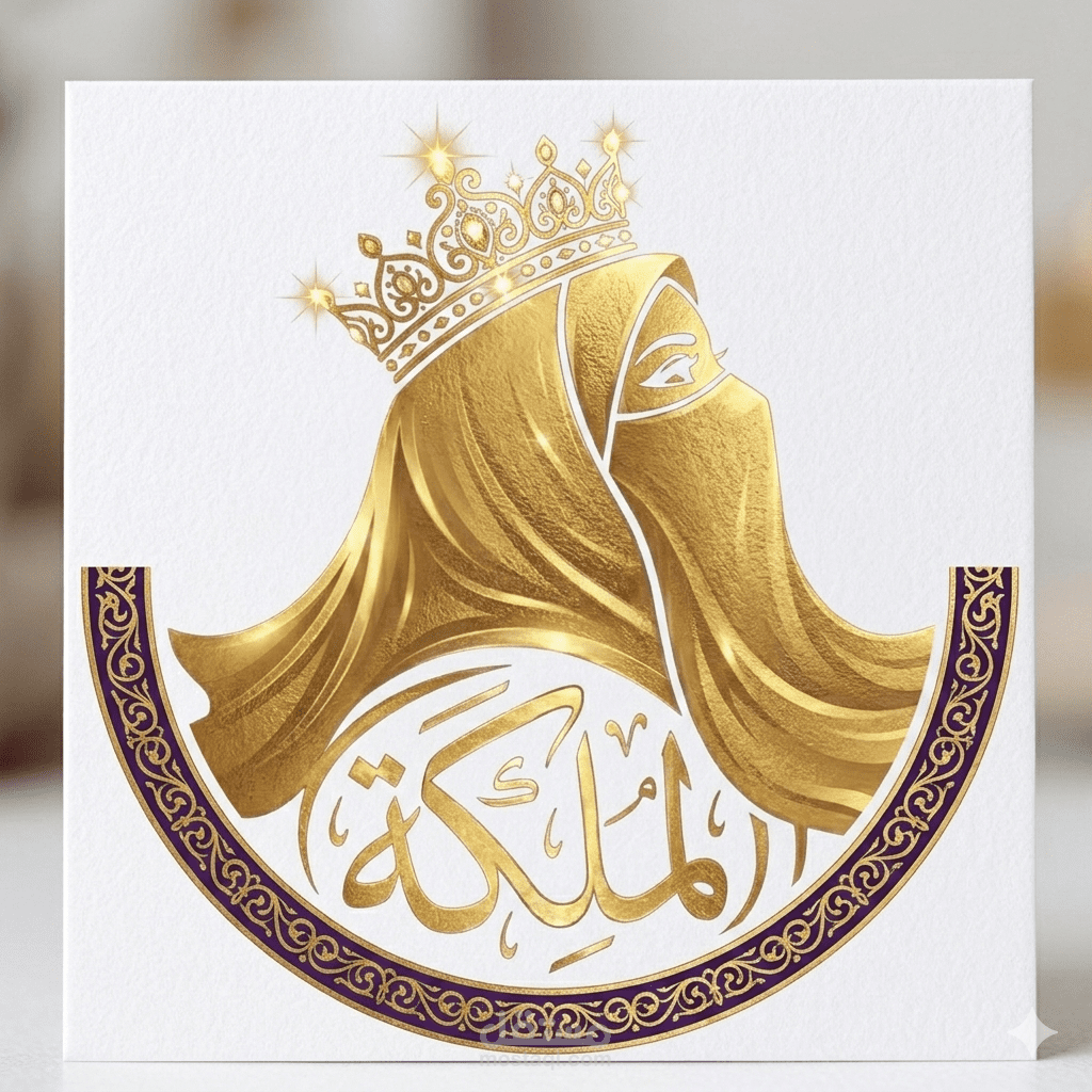 ليصمم لوقو فتاهومحبه ترتدي نقاب وعلى رأسها تاج ذهبي لامع