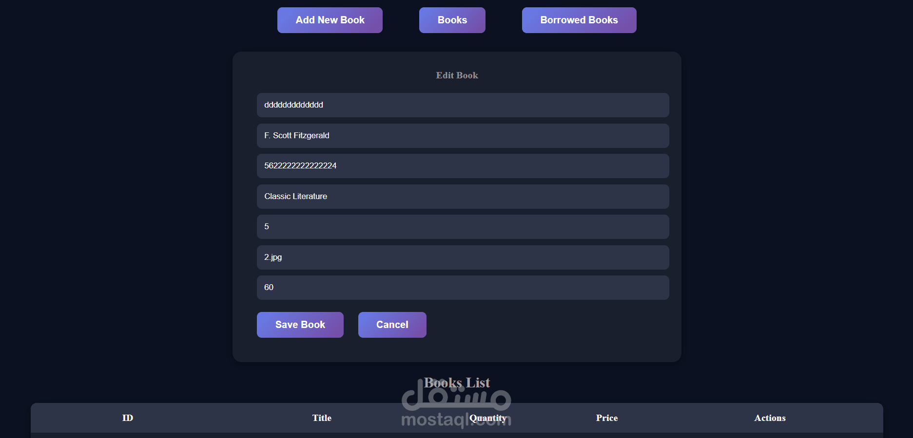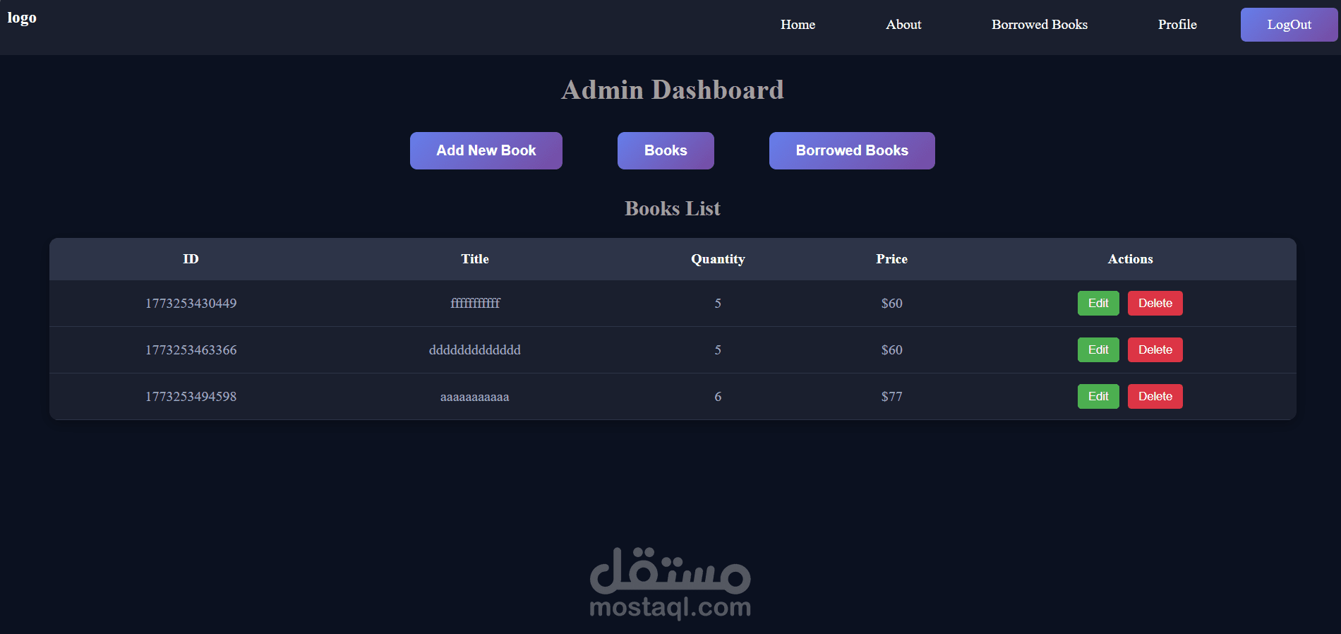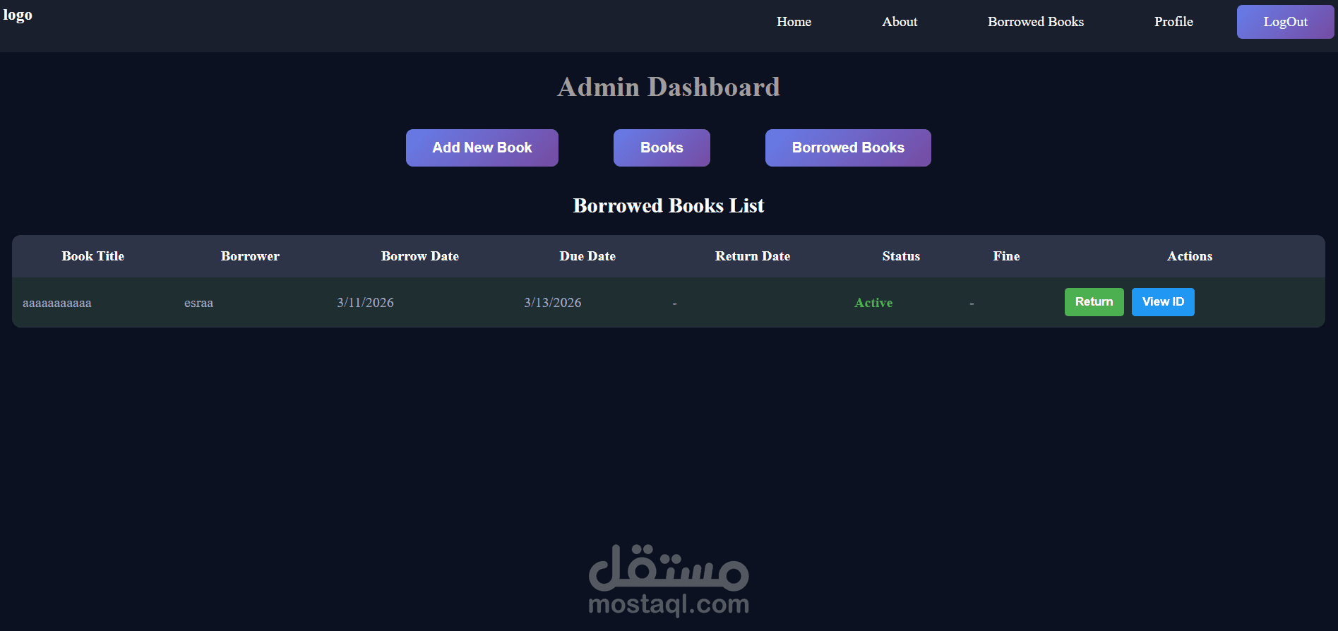 The system also includes an Admin Dashboard that enables administrators to manage the library efficiently. Through the admin panel, administrators can add new books, edit existing ones, delete books, and track all borrowing operations. They can also monitor which users borrowed books and whether they returned them or not.