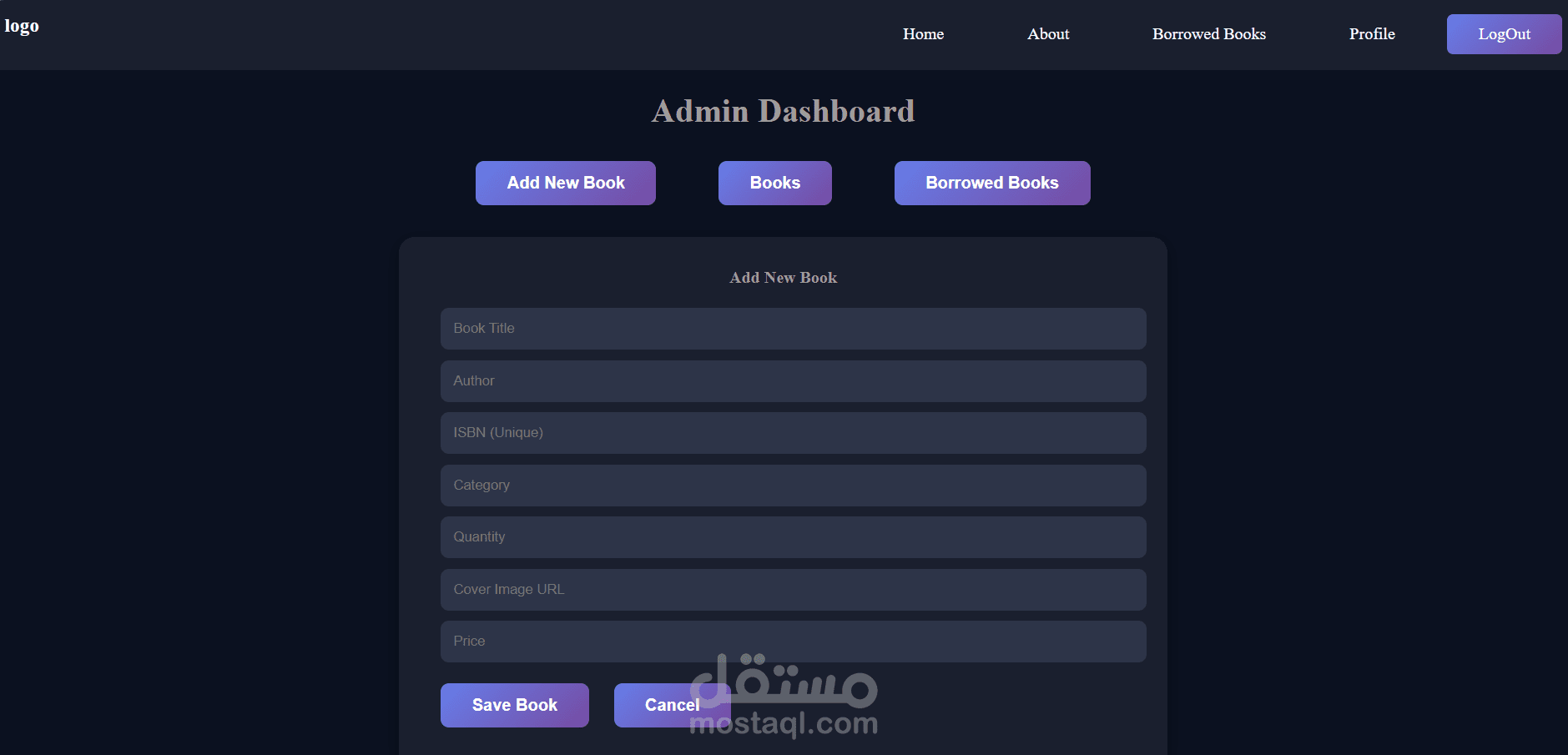 Admin dashboard for full library management