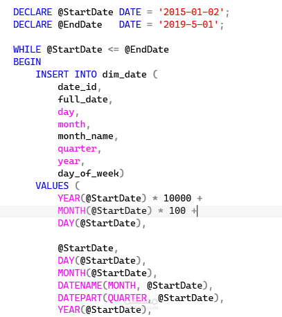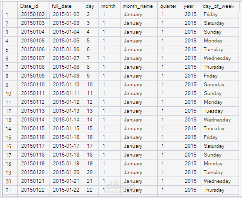 4- بناء Calendar Dimension احترافية تغطي كامل نطاق التواريخ.