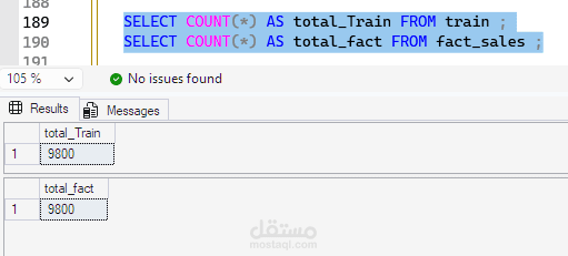 - مطابقة SUM(sales) بين المصدر والـ Warehouse