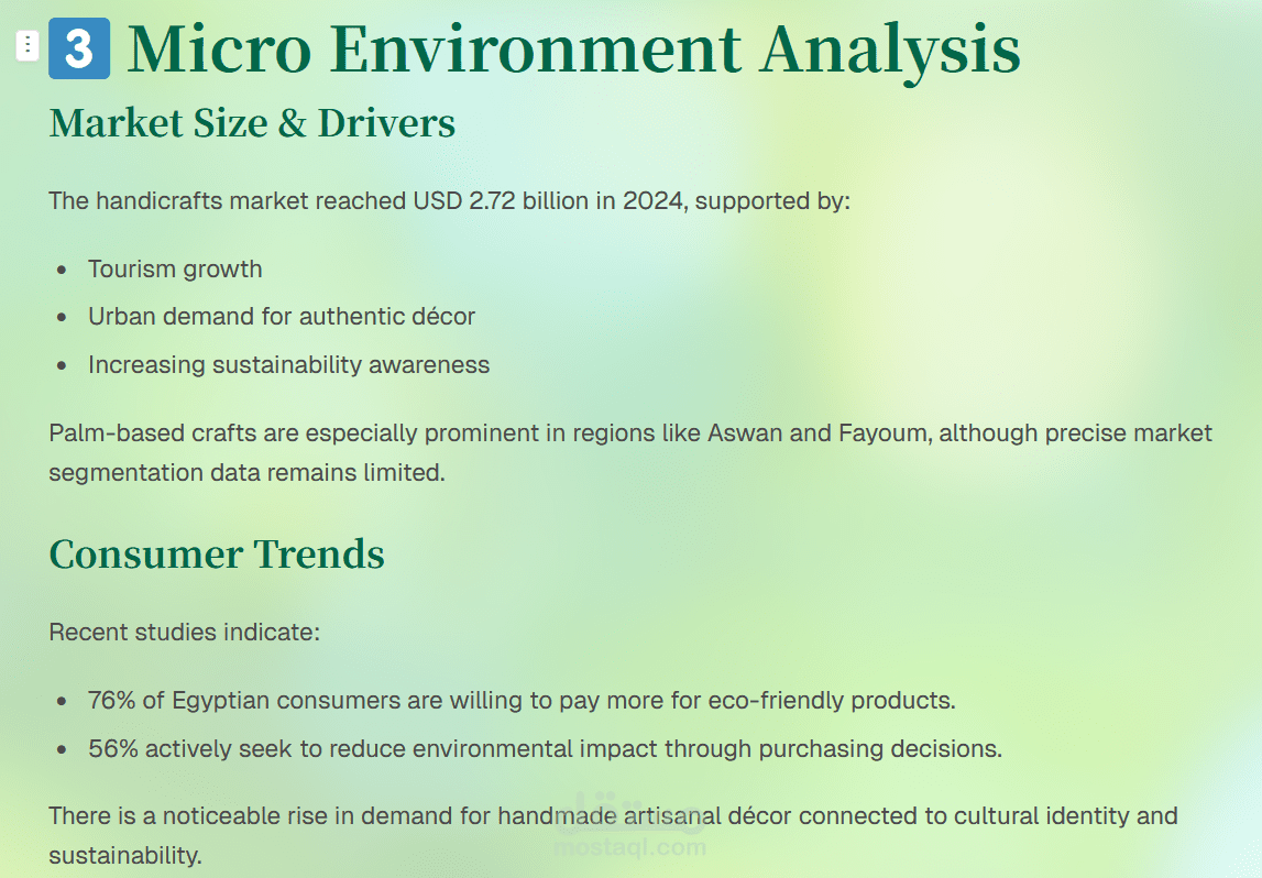 My role in the project was to lead the Market Research and Business Analysis. I conducted comprehensive market research to analyze the industry, identify target customers, and study market demand for recycled palm products. I also performed competitor analysis and evaluated potential market opportunities.