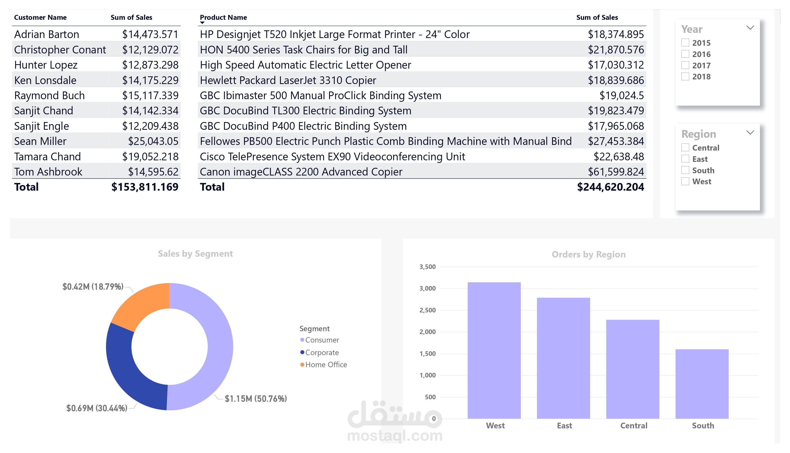 طورت أداة تقارير متكاملة لتحليل مبيعات إجمالية بلغت 2.26 مليون دولار، ناتجة عن 4,922 طلبية غطت 49 ولاية و529 مدينة أمريكية. تتيح الأداة رؤية دقيقة للنمو والانتشار الجغرافي.