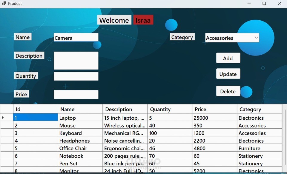 قمت بتطوير تطبيق Desktop لإدارة المنتجات باستخدام C# و Windows Forms مع ربطه بقاعدة بيانات SQL Server.
