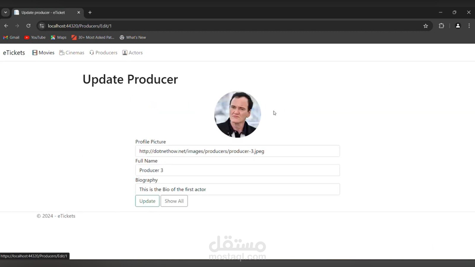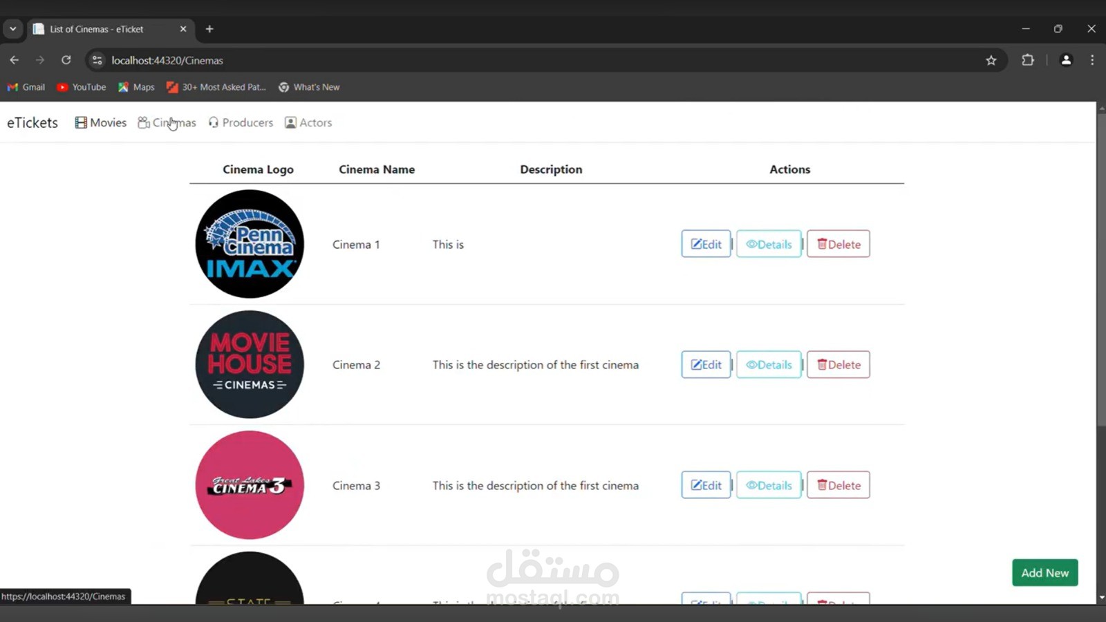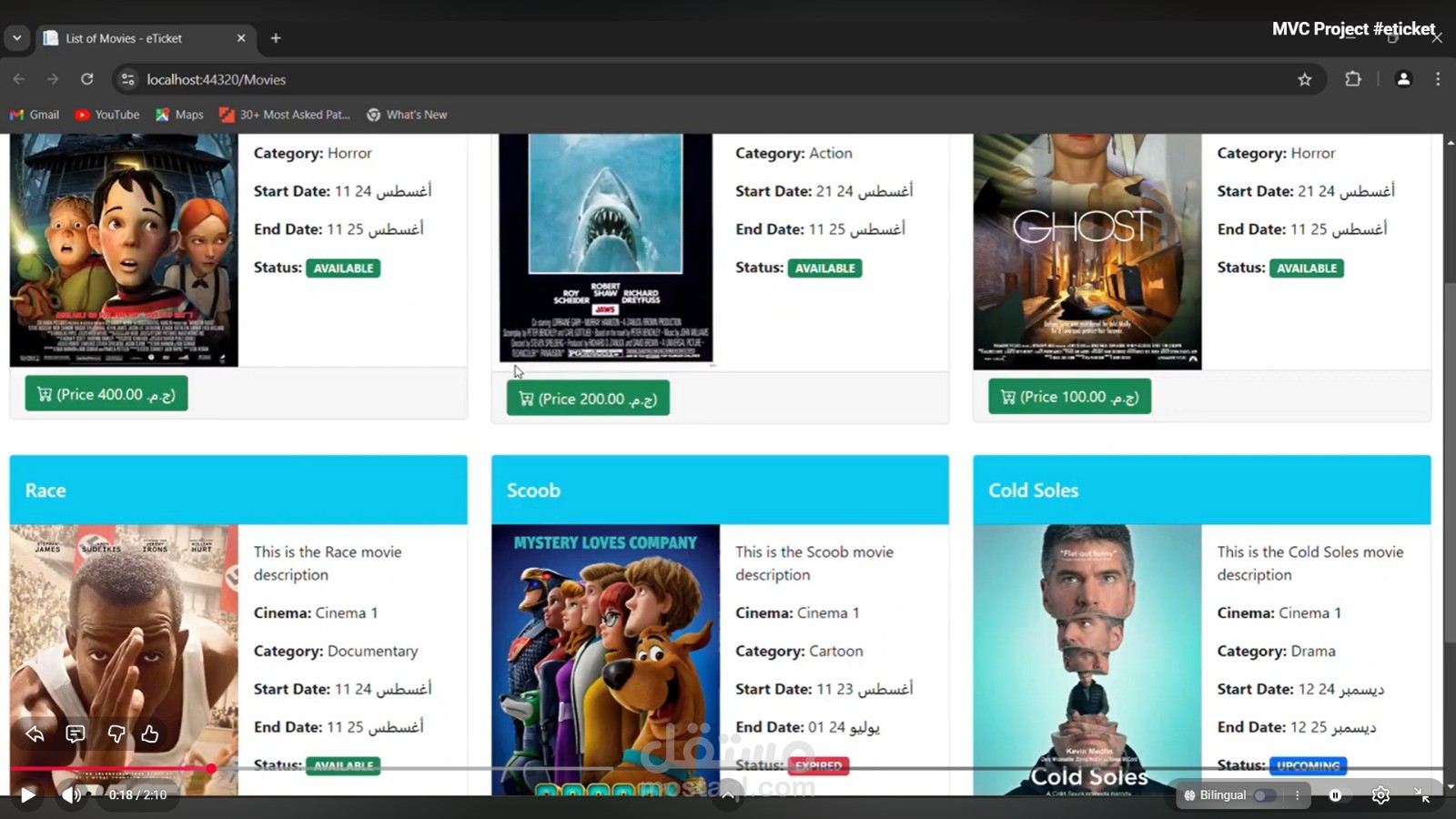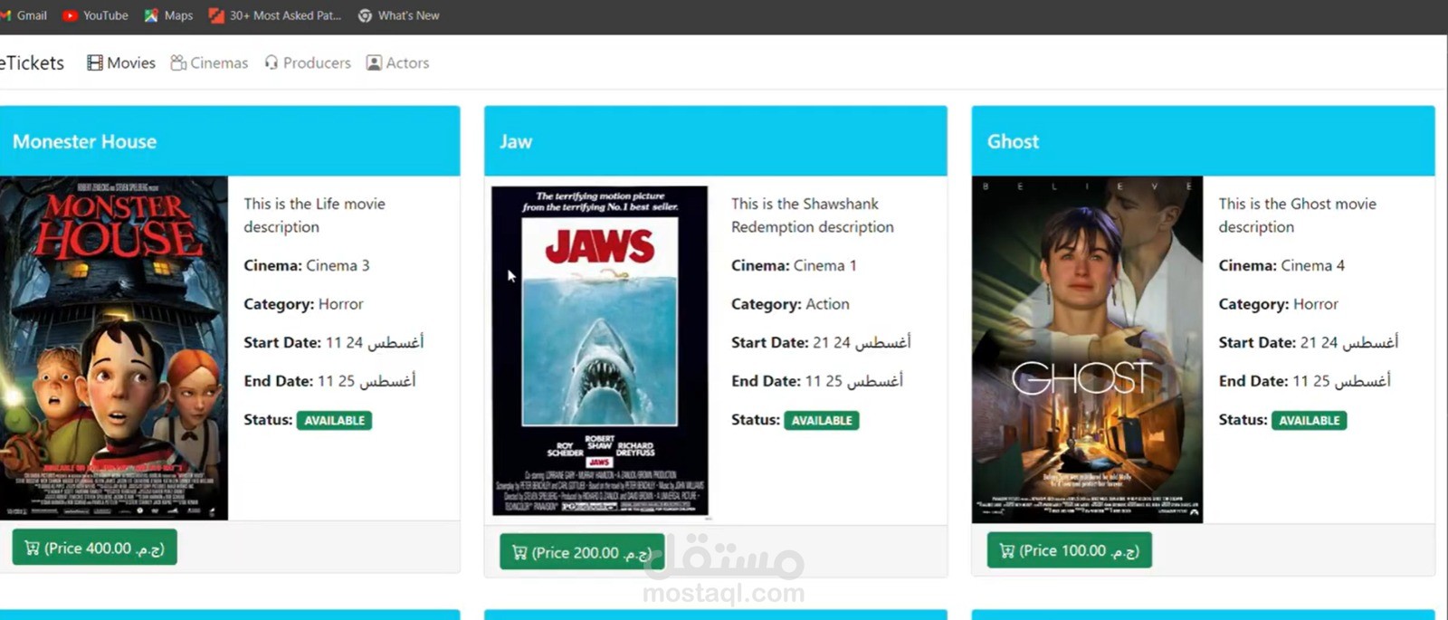 قمت بتطوير موقع ويب لحجز تذاكر السينما باستخدام ASP.NET MVC، يتيح للمستخدمين استعراض الأفلام المتاحة وحجز التذاكر بسهولة من خلال واجهة استخدام بسيطة وسريعة.