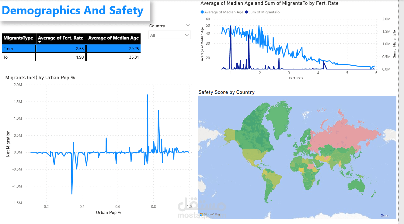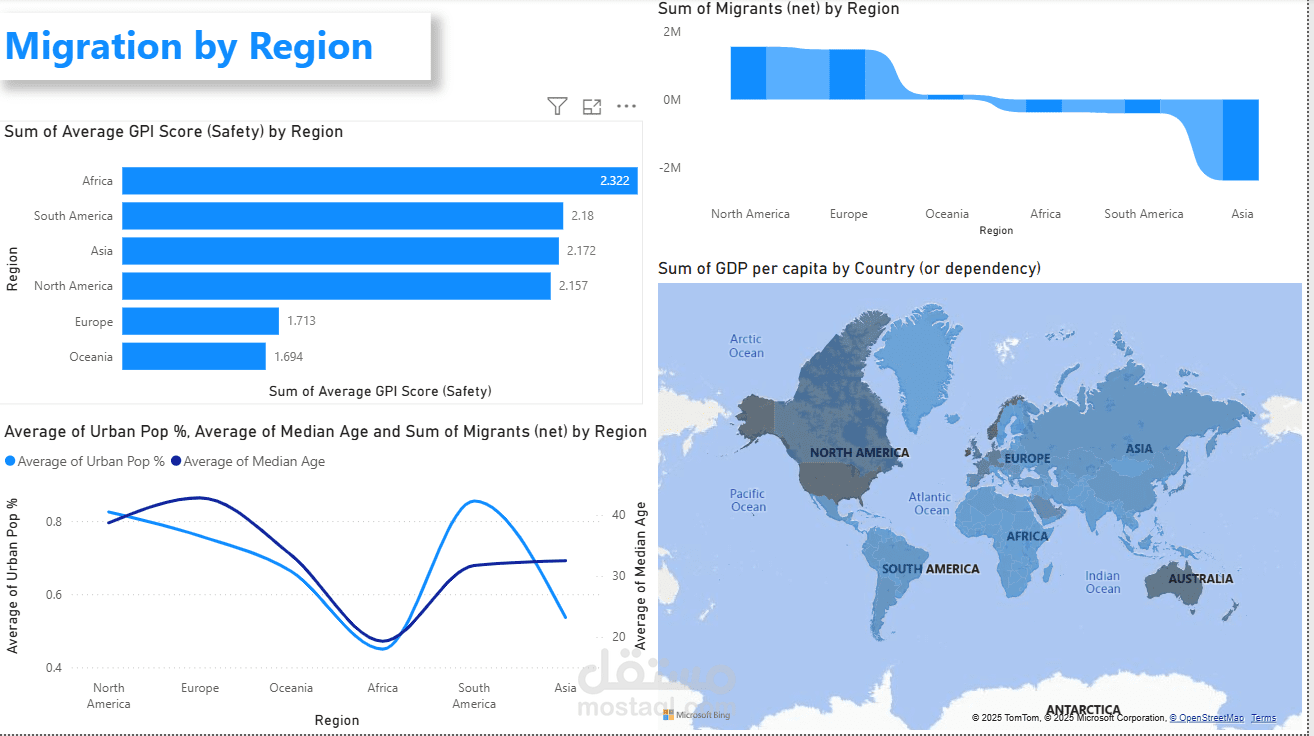 Insights: There is High positive relation between urban rate and migrations , Russia , Sudan, Ukraine have bad GPI score