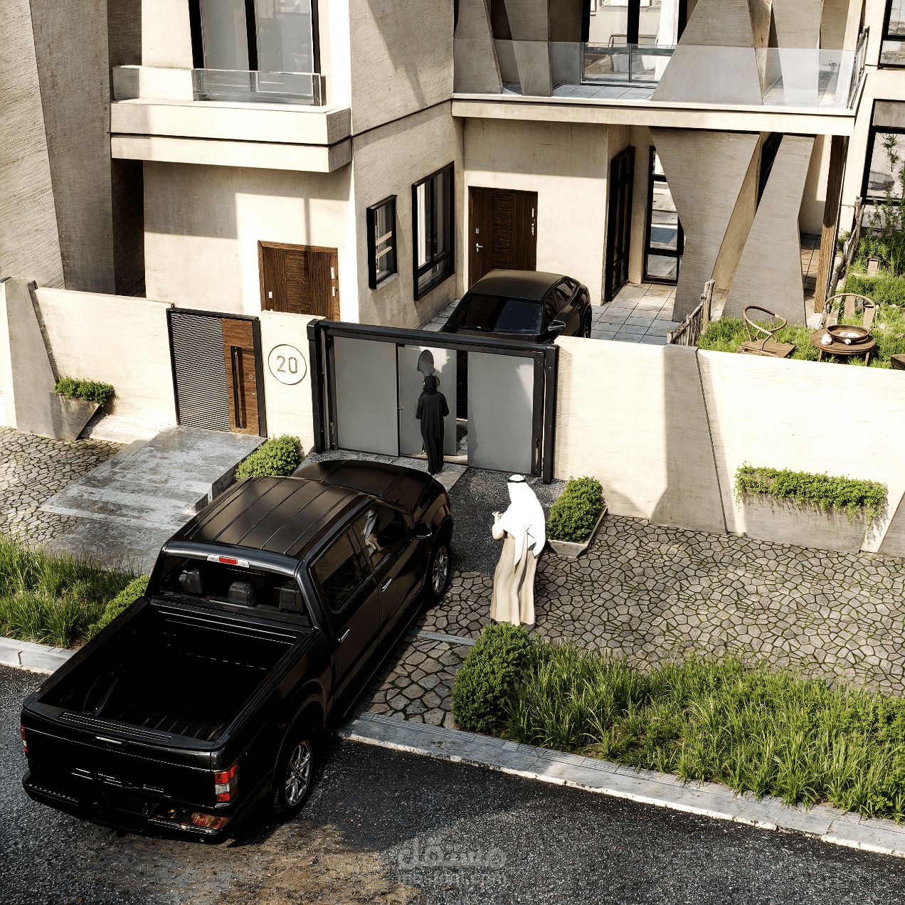 يعكس التصميم فلسفة الحداثة الجريئة التي توازن بين الخصوصية العالية والانفتاح البصري المدروس، مما يخلق هوية معمارية فريدة تتسم بالفخامة والوقار.