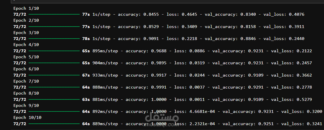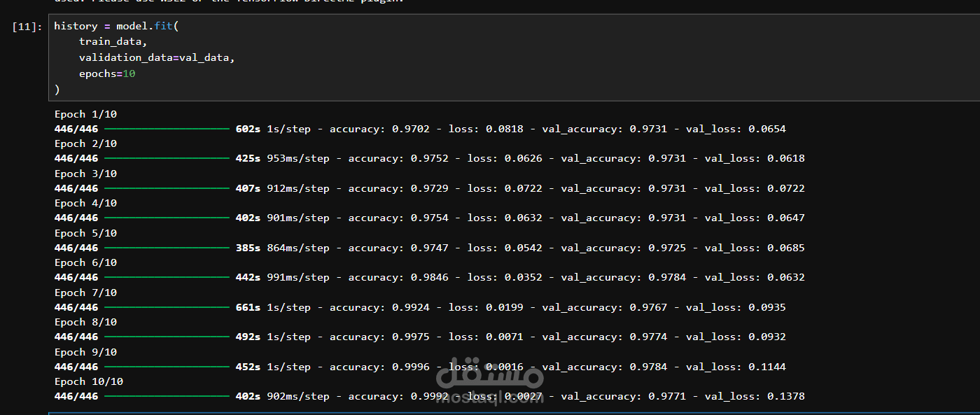 * تدريب النموذج وتحسين الأداء