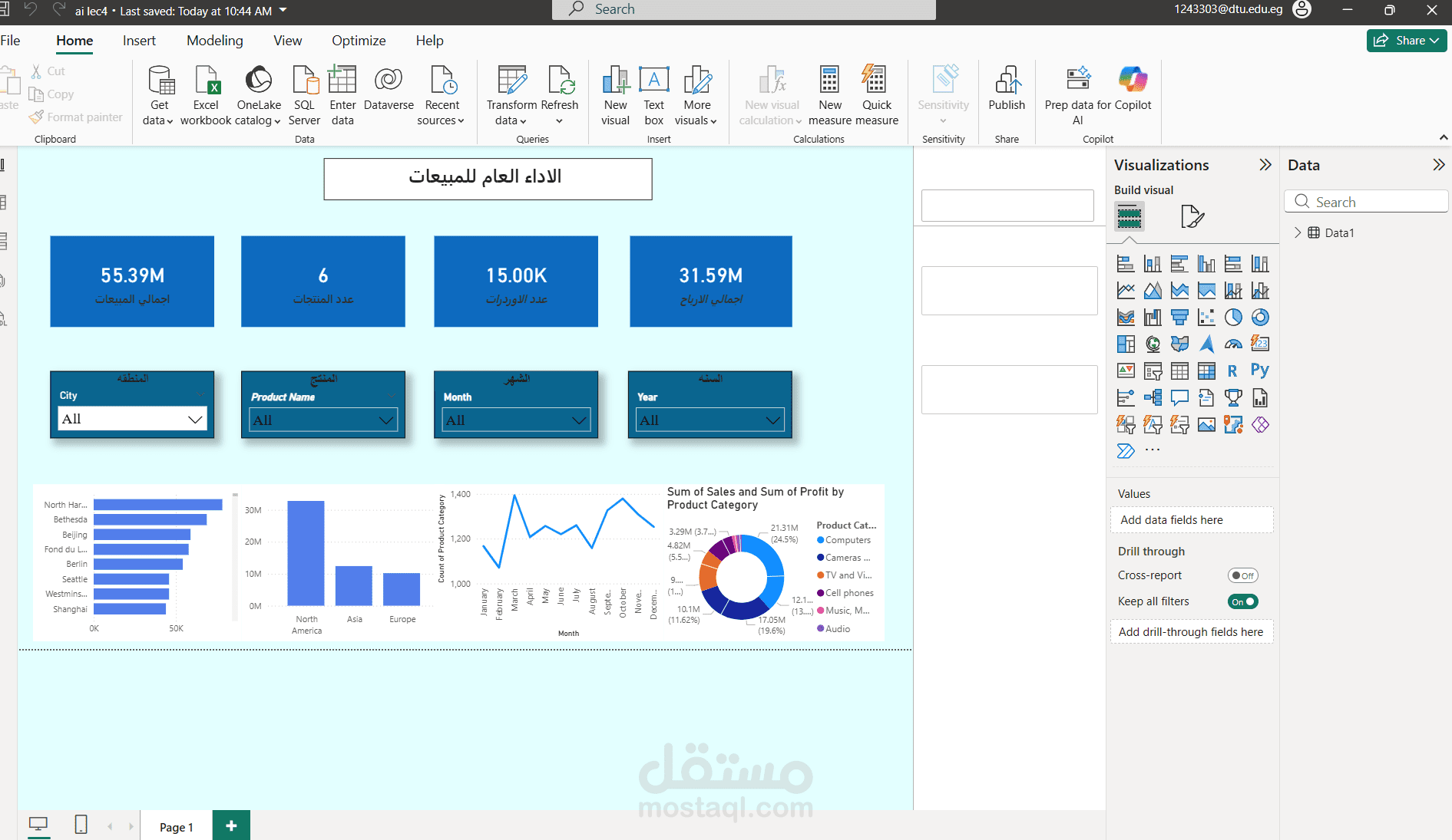أقدم خدمة تصميم لوحات تحكم تفاعلية لتحليل البيانات والمبيعات باستخدام Power BI، حيث يتم تحويل البيانات إلى رسومات وتقارير واضحة تساعد على فهم أداء المبيعات واتخاذ قرارات مبنية على البيانات.