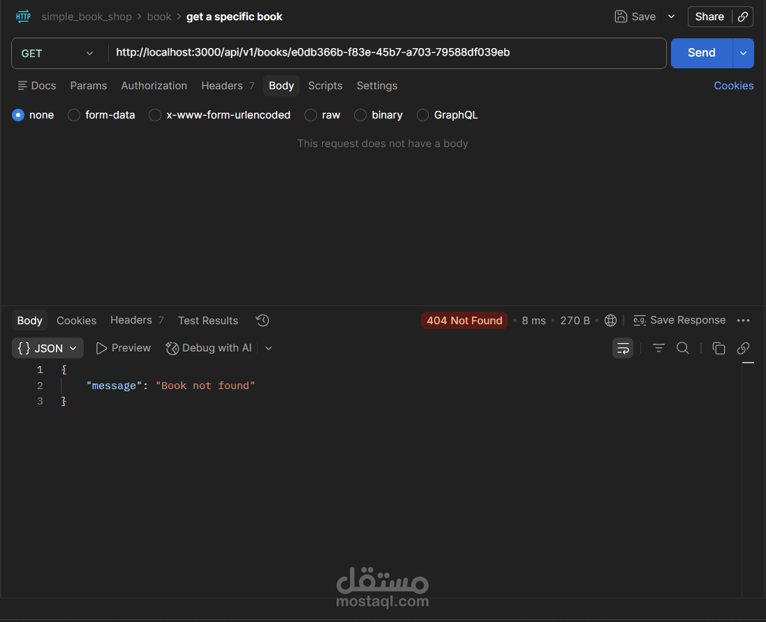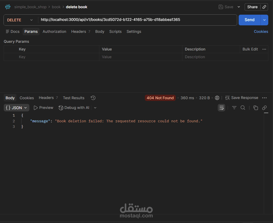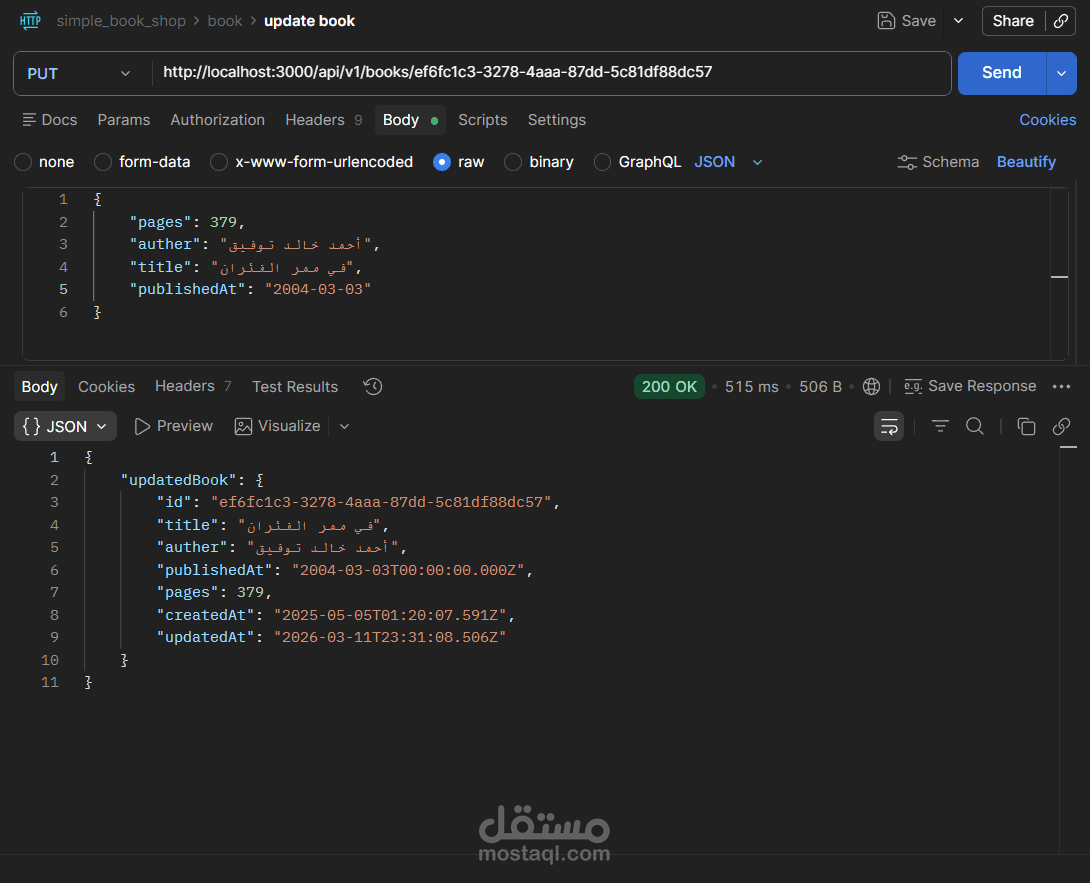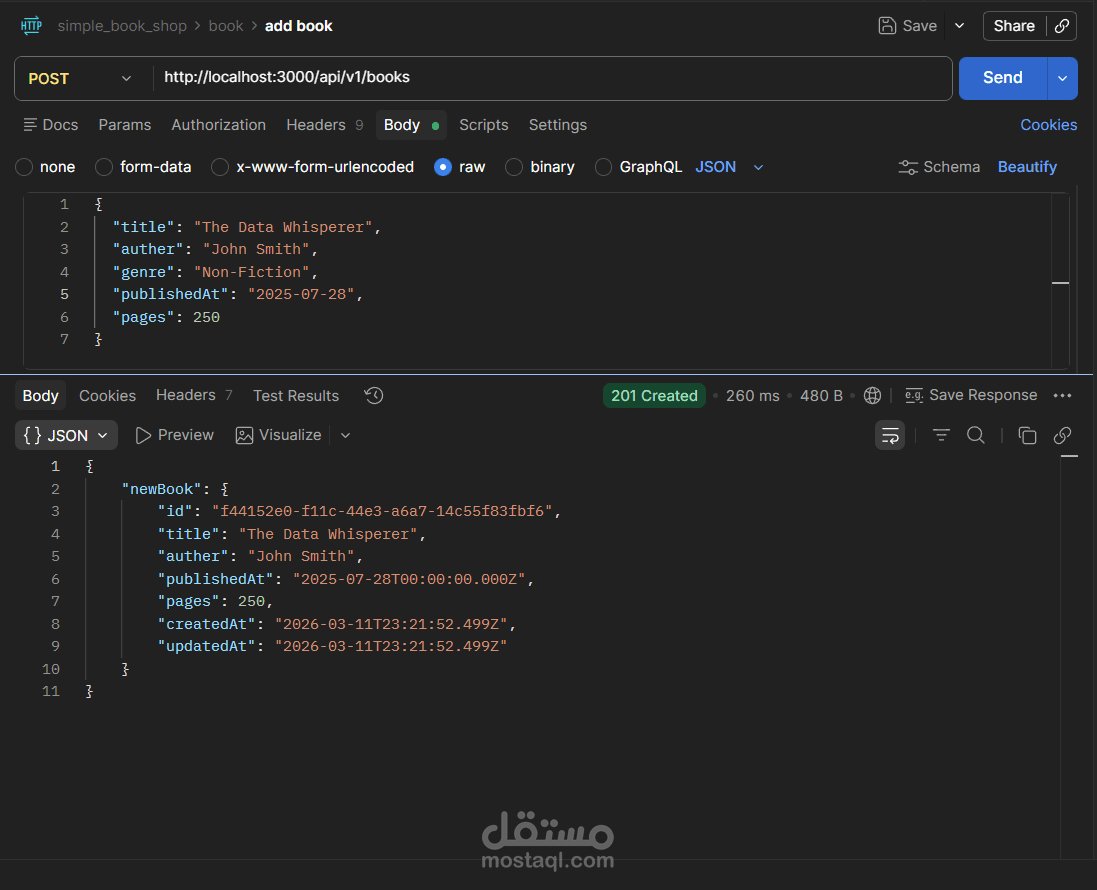 مشروع Book Store API هو تطبيق(Back-End) كامل لإدارة متجر كتب إلكتروني، مبني بـ Node.js و TypeScript باستخدام إطار عمل Express، مع قاعدة بيانات PostgreSQL يتم التعامل معها عبر Prisma ORM.